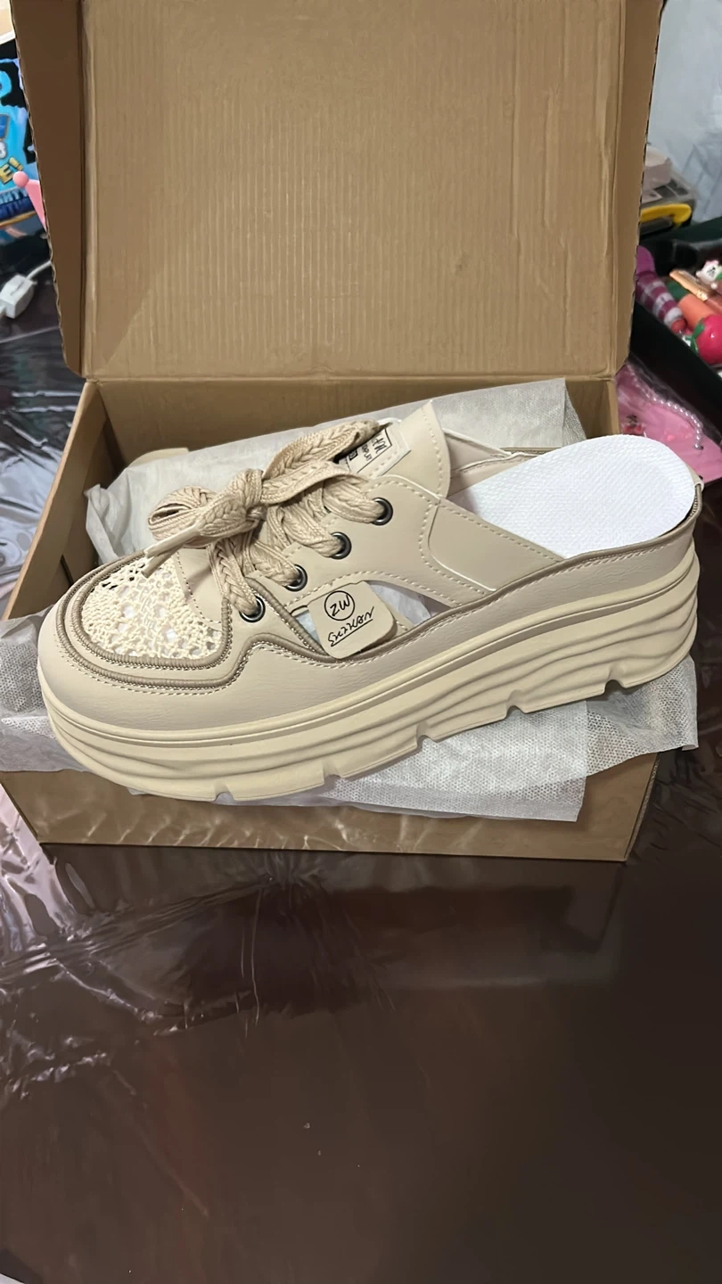 Cute beige platform mules from ZW! These are a size 37 and come with the original box. They feature a unique lace-up design and a comfortable platform sole. Perfect for adding a touch of style to any outfit