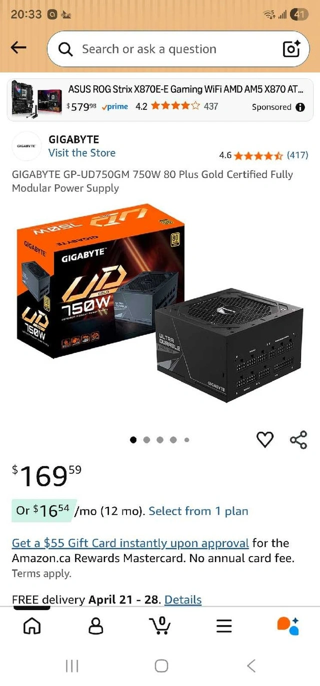Used once to test computer. 750W Capacity with Single +12V Rail, 80 Plus Gold Certified, ATX Form Factor, Fully Modular Design, Japanese Capacitors. Asking $100 or best offer. Can meet in Aurora or Oshawa.