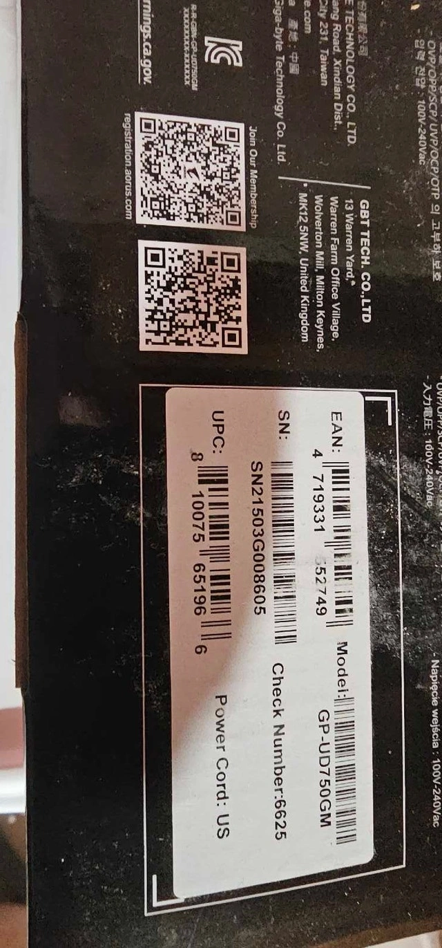 GIGABYTE GP-UD750GM 750W 80 Plus Gold Certified Fully Modular