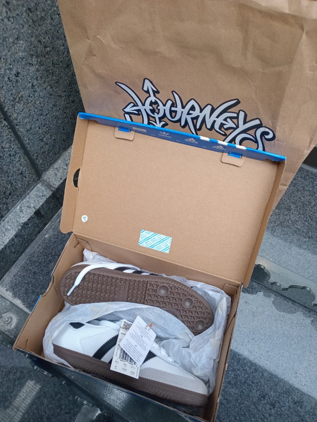 Adidas Samba OG W sneakers in white and black. Women's US size 6. Includes original box and shopping bag. These classic shoes offer a retro look.