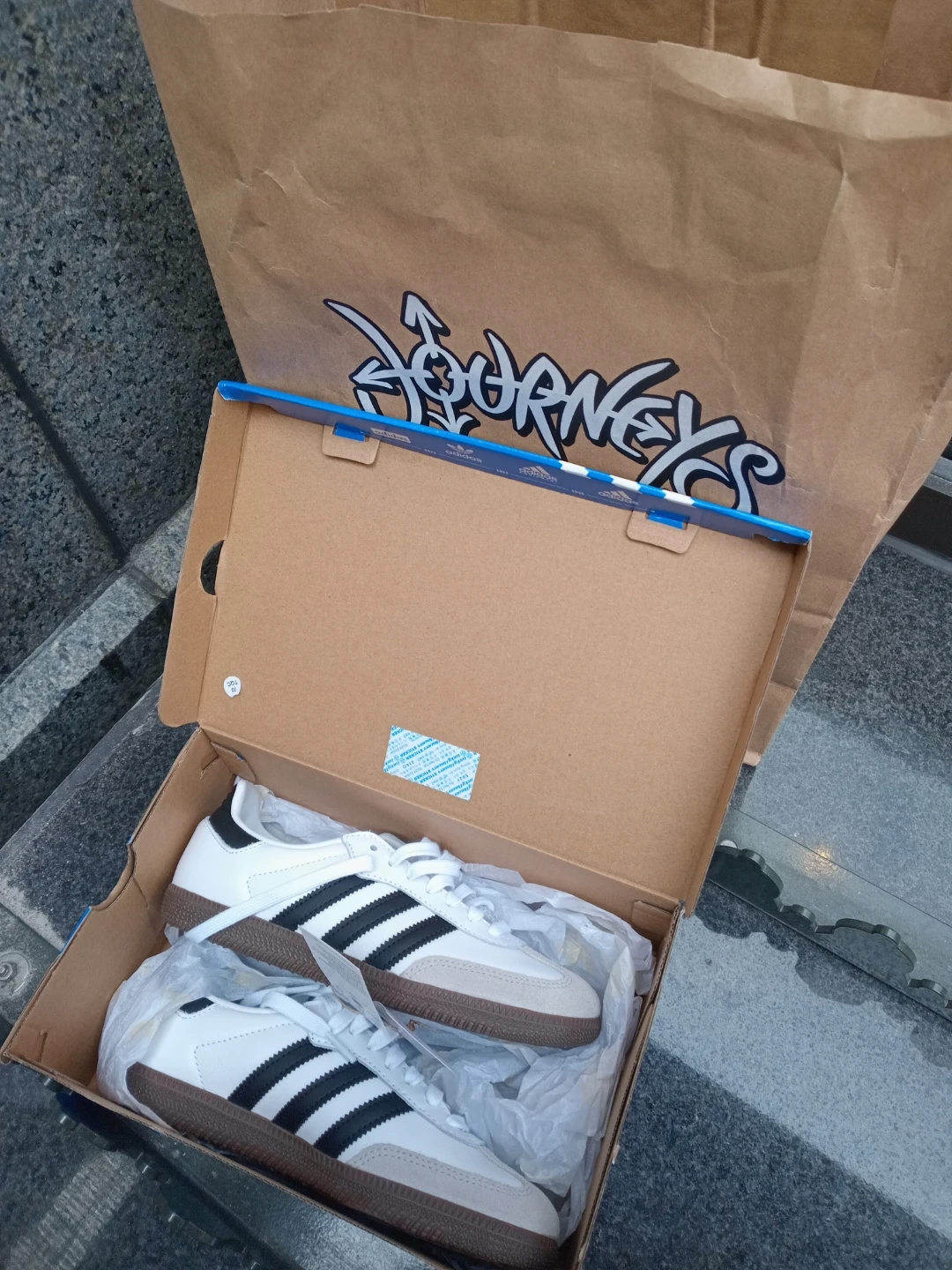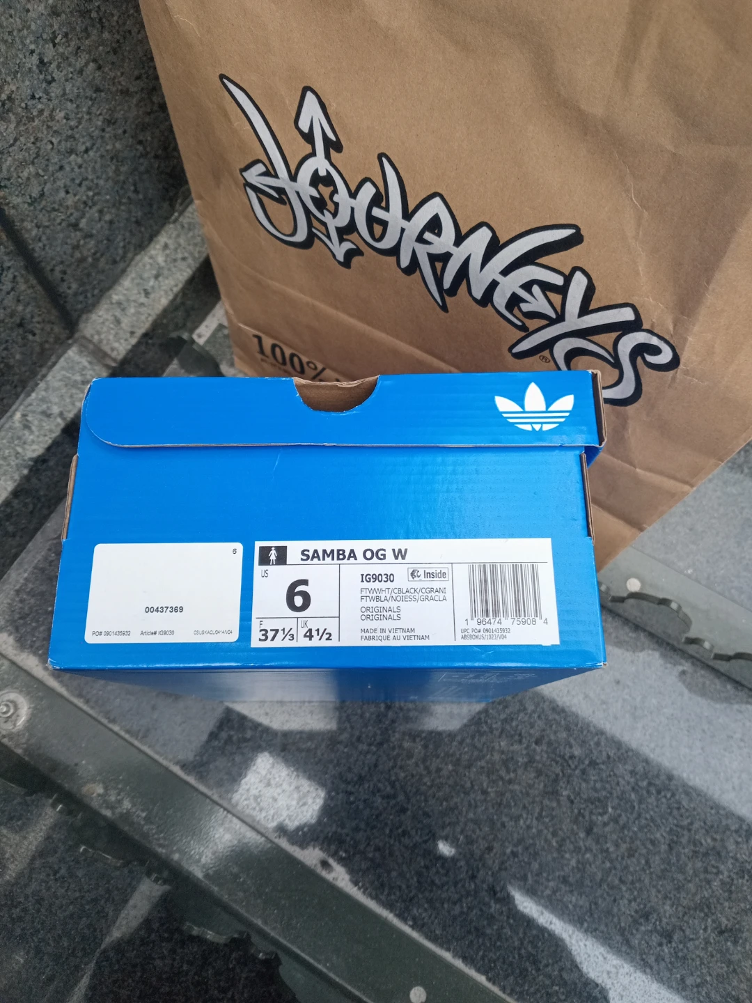 Adidas Samba OG W sneakers in white and black. Women's US size 6. Includes original box and shopping bag. These classic shoes offer a retro look.