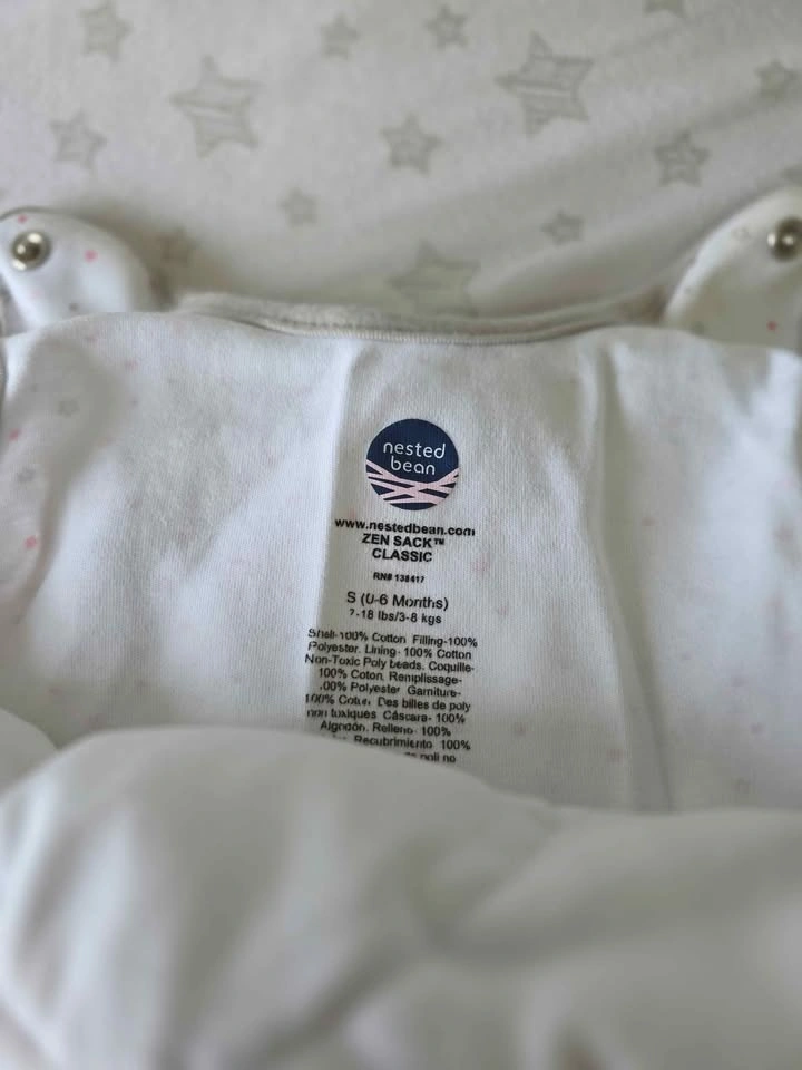 Nested Bean Zen bag classic, 0 to 6 months, in excellent condition. Has a two-way zipper. Pick up is Bayview and Eglinton