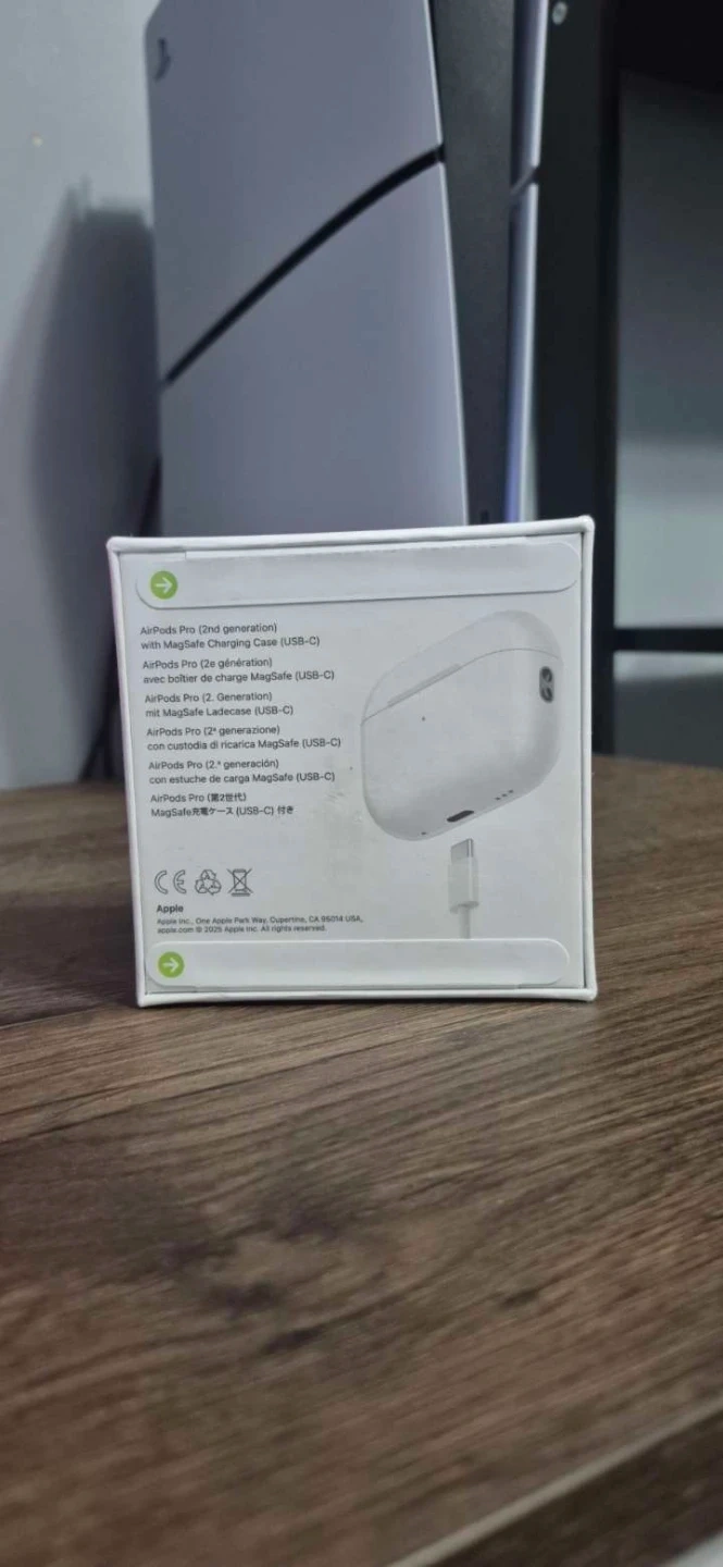Apple AirPods Pro (2nd generation) wireless earbuds. Includes charging case and USB-C cable. MagSafe compatible.