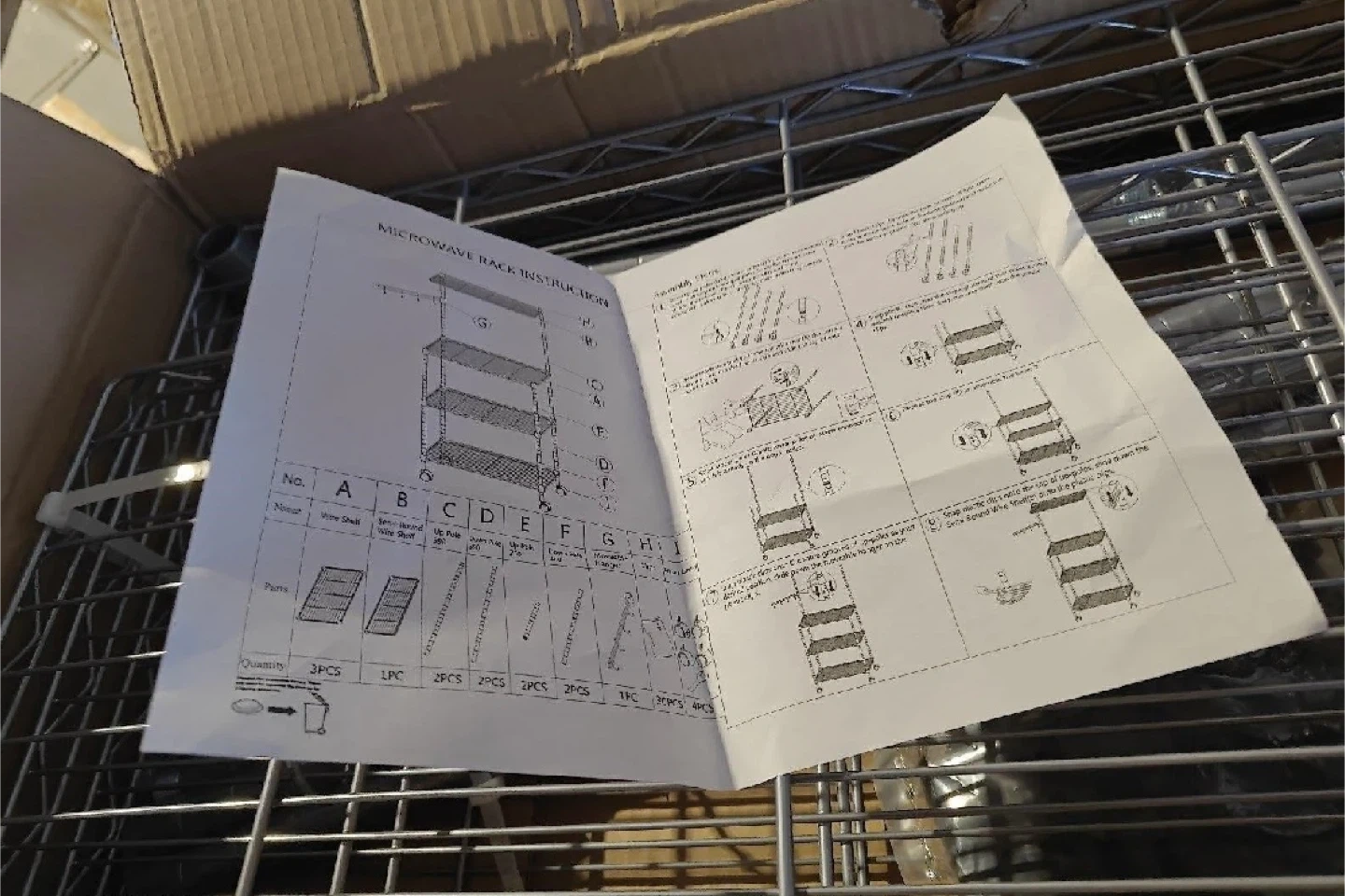 This brand new in box Ktaxon 4 tier kitchen baker's rack, perfect for adding storage and style to your kitchen or pantry. This rack features a sturdy metal frame with four tiers of shelving, providing ample space for your microwave, cookware, and other kitchen essentials. The adjustable feet ensure stability on any surface. Ready to assemble and easy to move around thanks to its rolling wheels. It would look great in any kitchen!