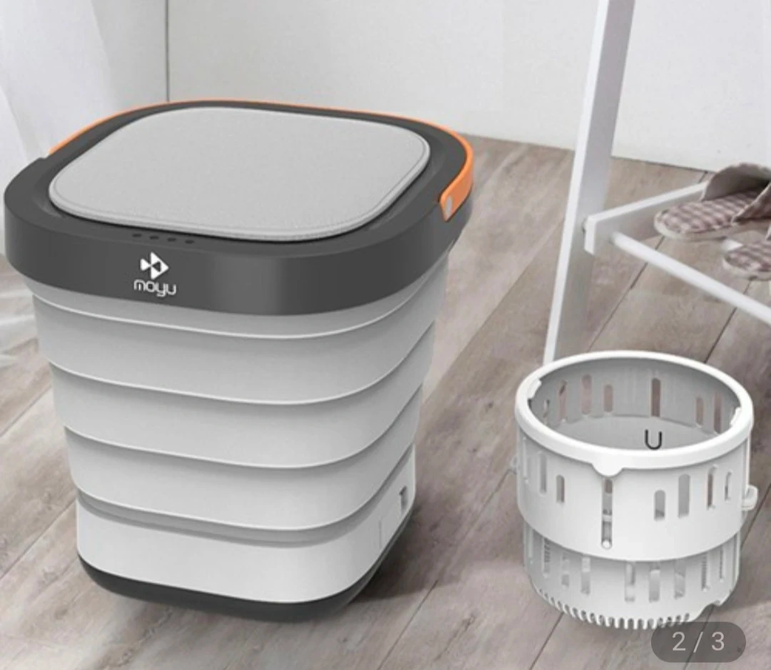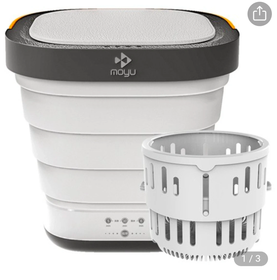 This Moyu portable folding washing machine is great for small loads. It's compact and easy to store when not in use. Includes a draining basket.