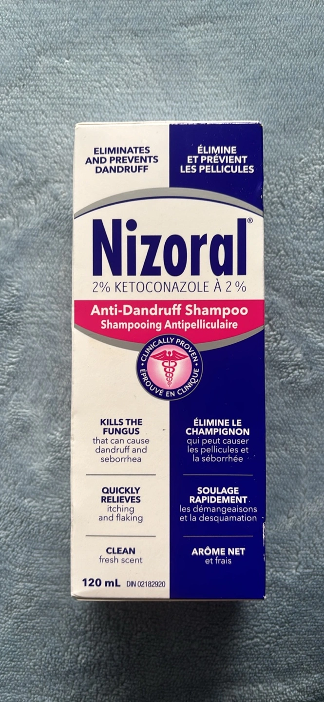 120ml bottle of Nizoral Ketoconazole 2% Anti-Dandruff Shampoo. Eliminates dandruff and fungus. Kills the fungus that can cause dandruff and seborrhoea. Quickly relieves itching and flaking. Clean fresh scent.