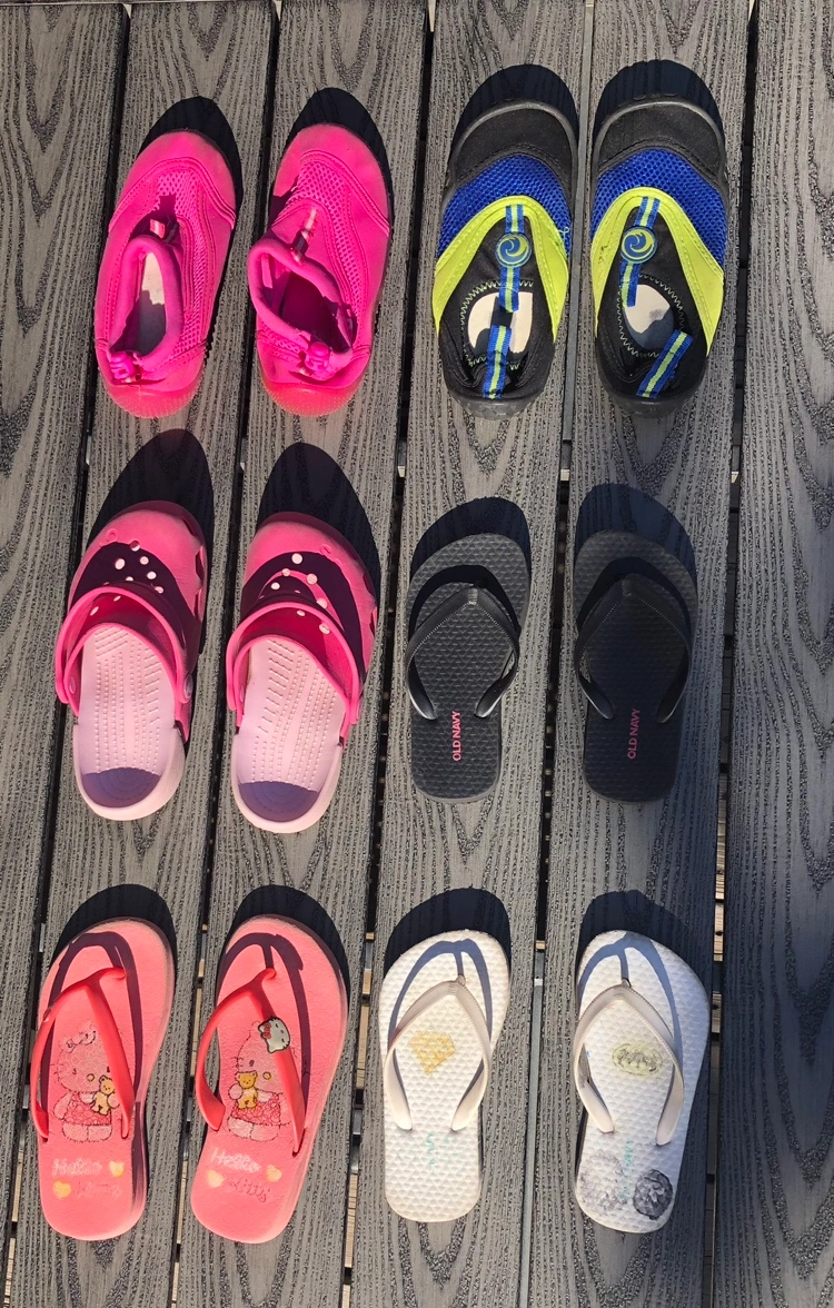 Water shoes and flip flops