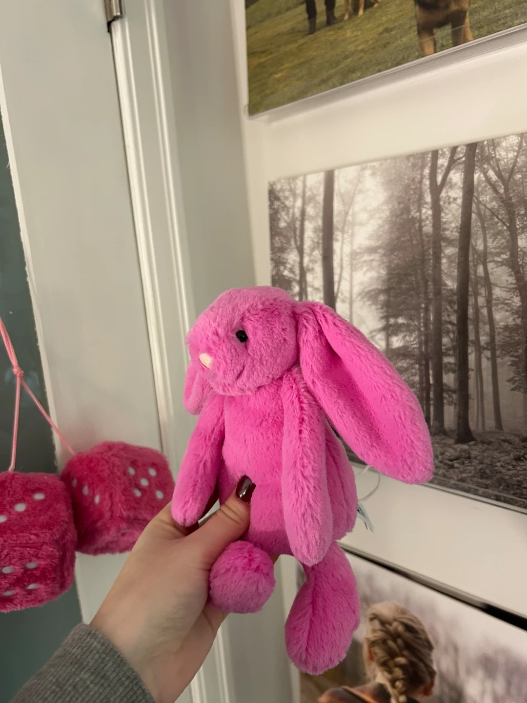 Selling a super cute Jellycat bunny plush! It's in great condition and ready for a new home. This soft and cuddly bunny is perfect for kids or anyone who loves plush toys. It's a vibrant pink color and made with high-quality materials, making it extra huggable