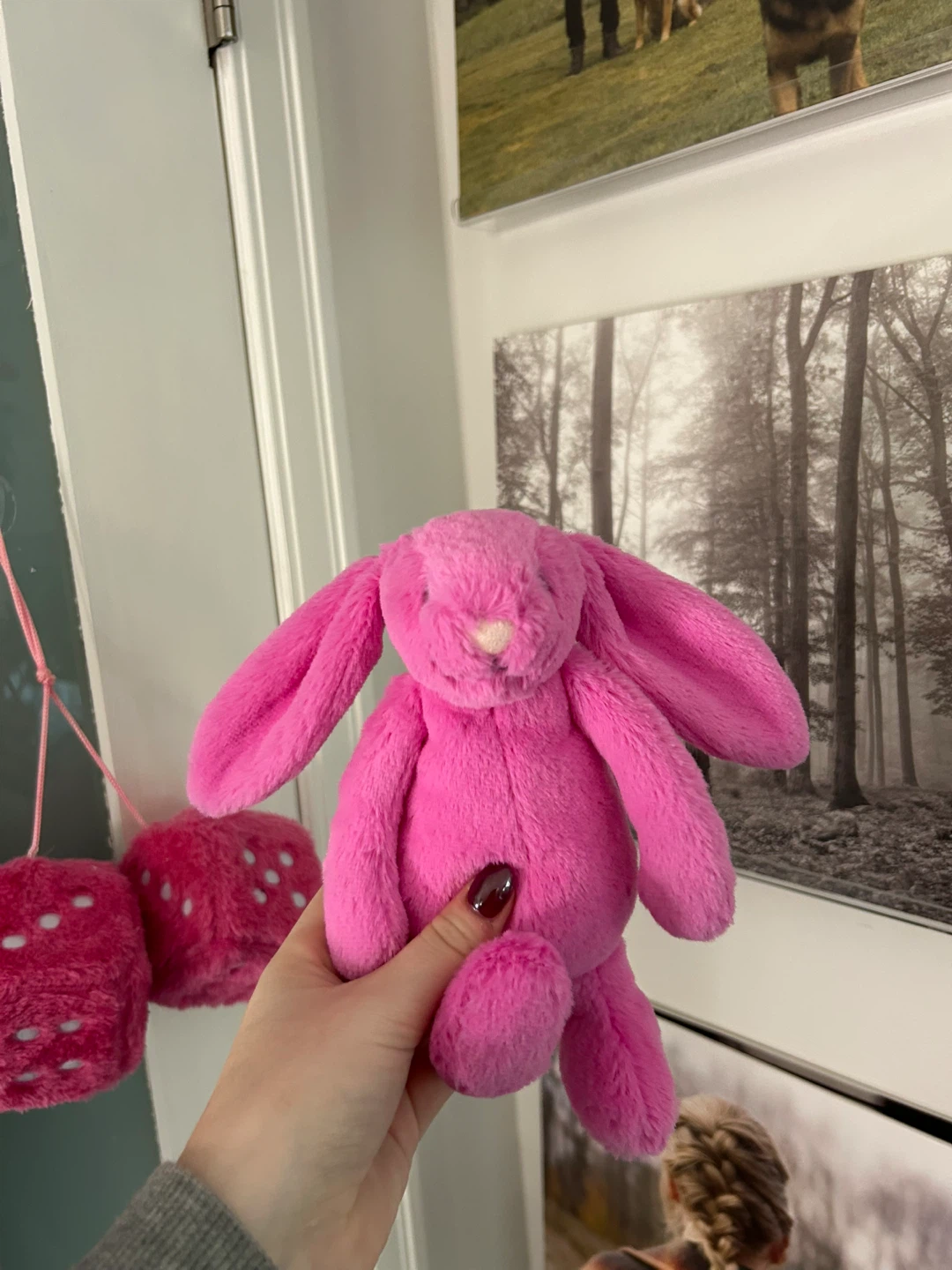 Selling a super cute Jellycat bunny plush! It's in great condition and ready for a new home. This soft and cuddly bunny is perfect for kids or anyone who loves plush toys. It's a vibrant pink color and made with high-quality materials, making it extra huggable