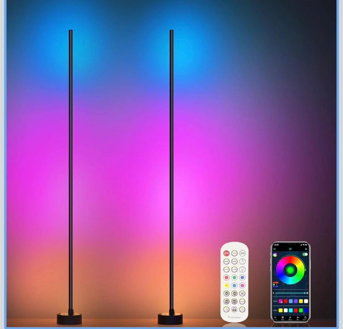 This set includes two modern RGB floor lamps. They're controlled via a remote and a smartphone app. Each lamp has an adjustable color spectrum and various lighting modes! It's great for creating ambiance.