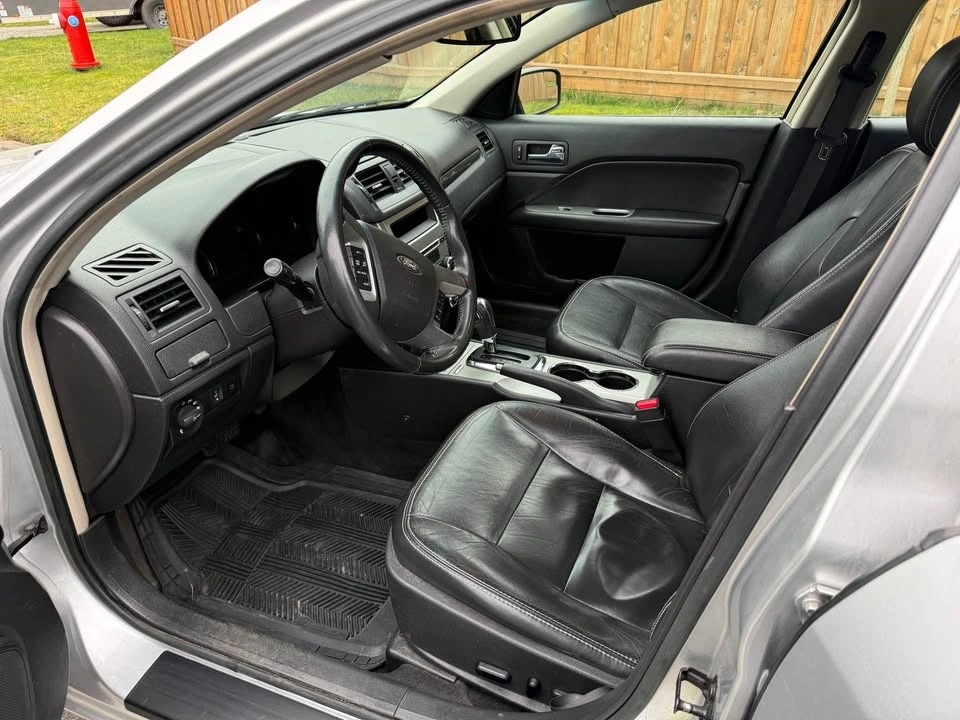 Gray 2012 Ford Fusion SEL with black leather interior. Price reduced to $5,500. 194,200 km. 3.0 V6 Automatic. Features include A/C, stereo, aux outlet, Bluetooth, back-up assist system, heated seats, and airbags. Comes with 2 key fobs. New front & rear brakes and recent oil & filter change. This is a well-maintained, local vehicle with no accidents. The vehicle runs great. Selling because we bought a new vehicle.
