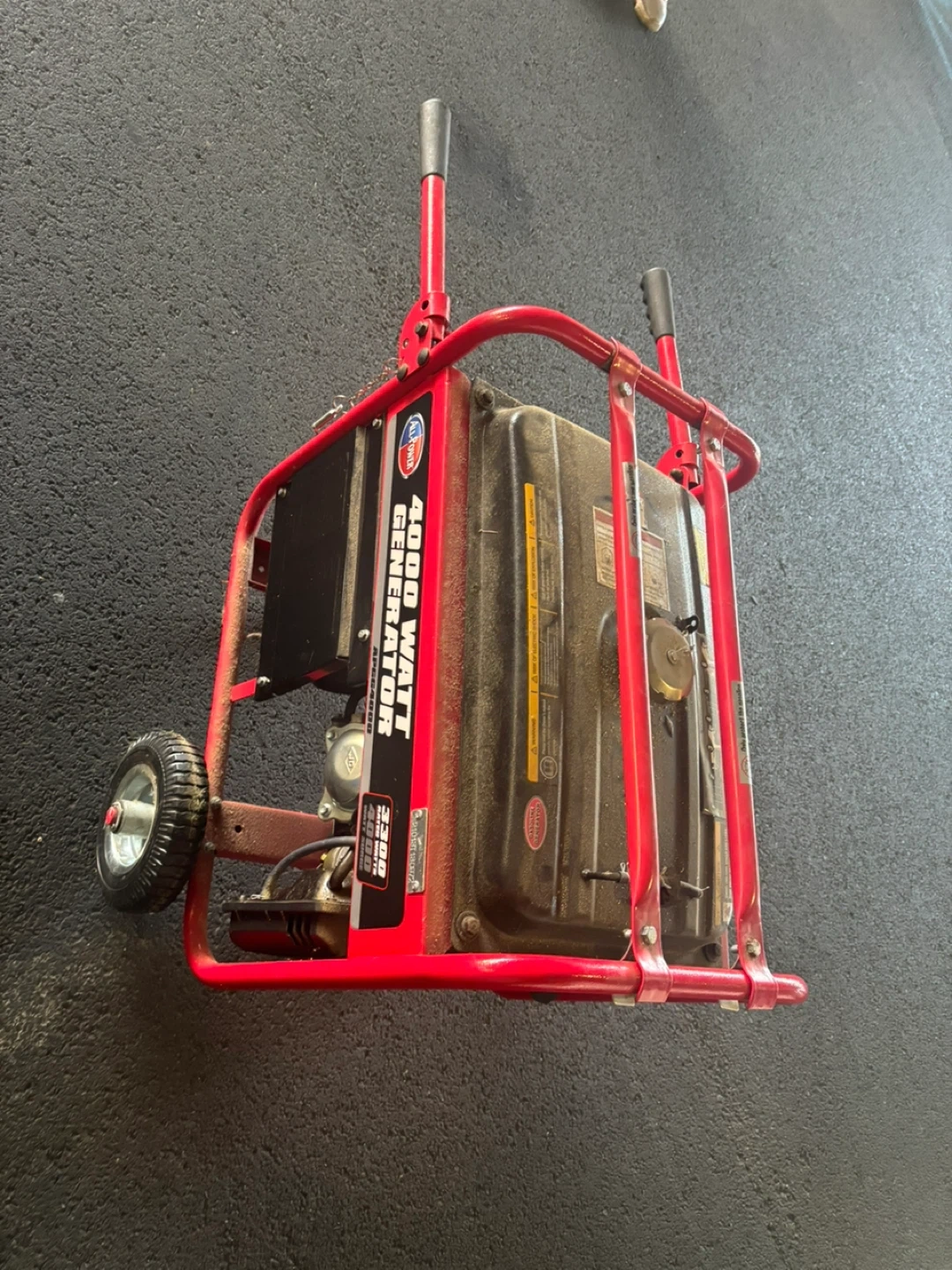 Selling an All Power 4000 Watt Generator. It has a red frame and is ready to use. Perfect for emergencies or outdoor activities