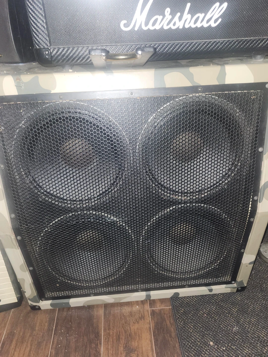 Marshall MG100HCFX amplifier head. It's a 100-watt amp head with built-in effects. Includes headphone out and CD input. Also selling a recovered 4 x 12. Celestion 70-80 loaded cab. 150 for the head and 200 for the cab. The cab needs work but the speakers are in perfect condition.