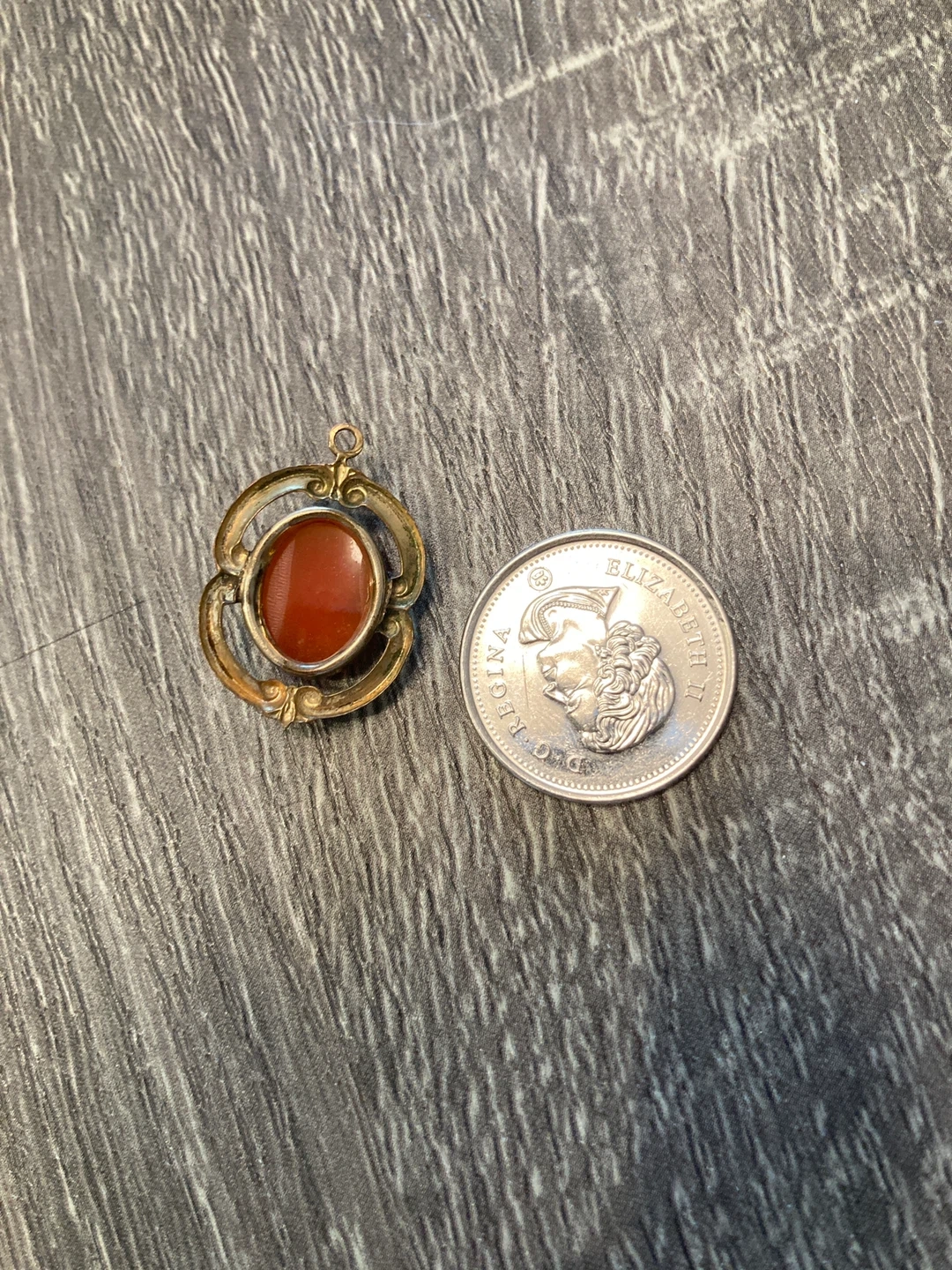 This is a vintage cameo pendant charm featuring a woman's profile. It's set in a decorative gold-toned metal frame. This charm would be lovely for adding to a bracelet or necklace.