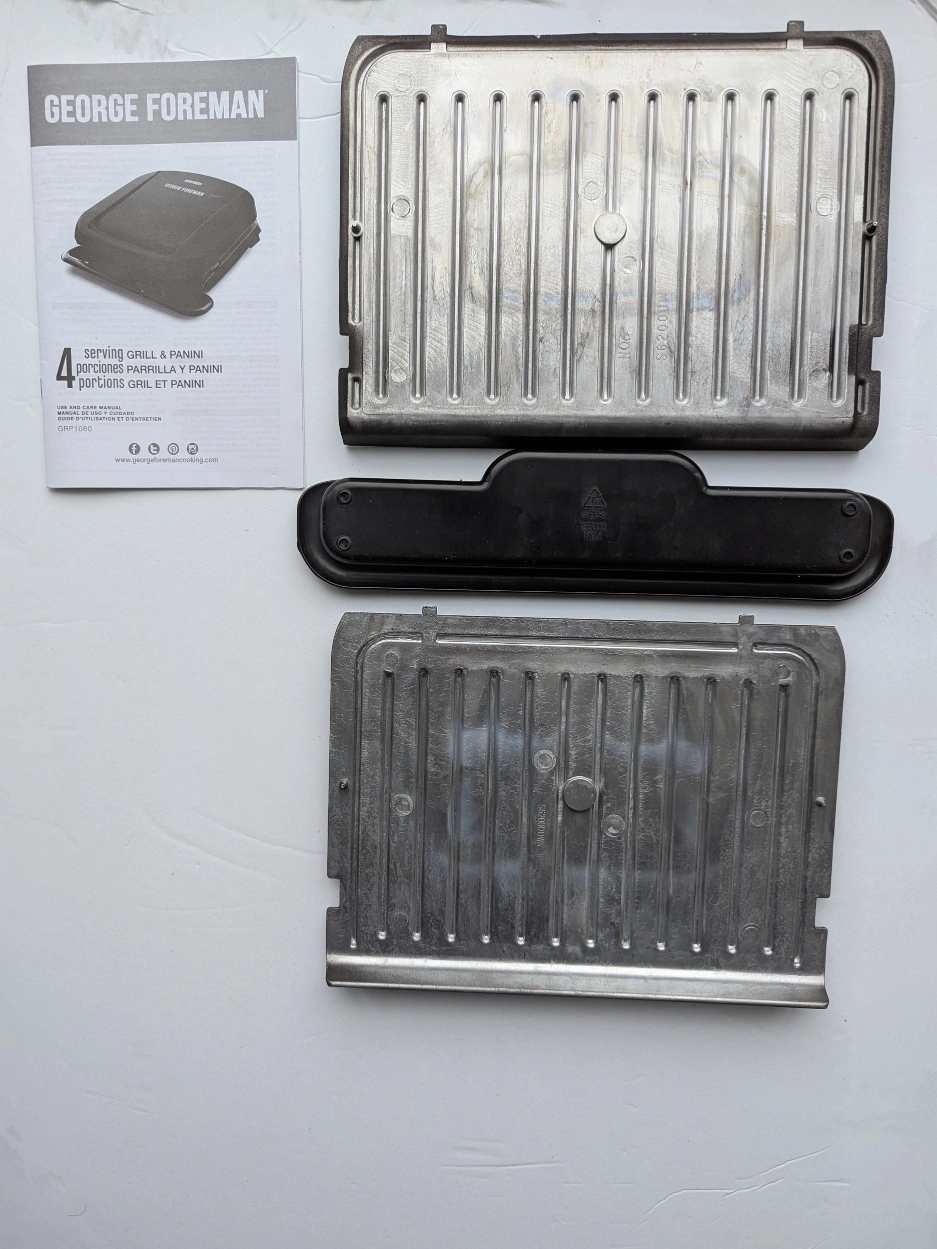 George Foreman replacement plates panini grill 4 servings. pictures of the entire George Foreman is only for reference. I'm only selling the plates.