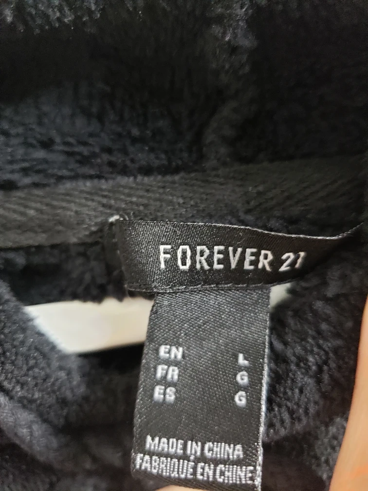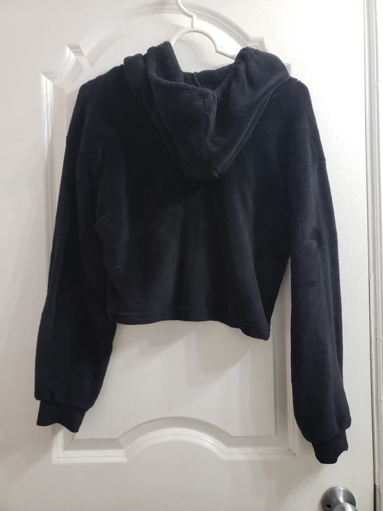 Forever 21 Black Cropped Fuzzy Hoodie for girls.Size L