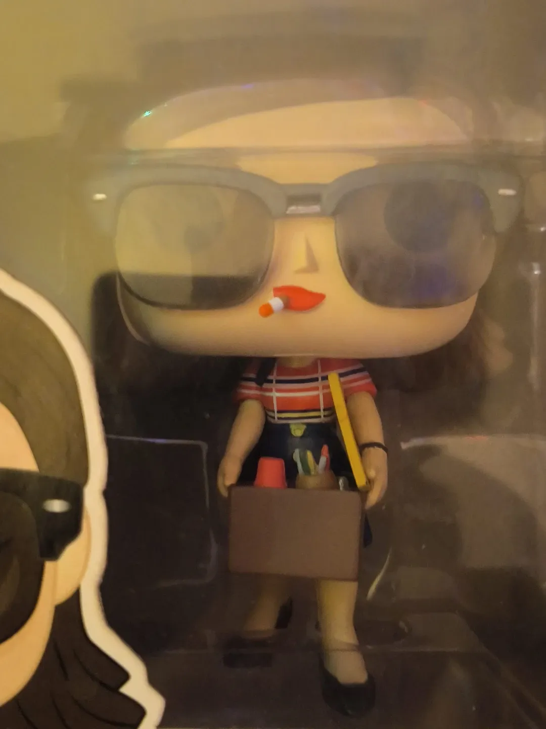 This is a Funko Pop! figure of Lucille Ball. It depicts her with glasses, holding a toolbox with art supplies. The figure is in its original box.