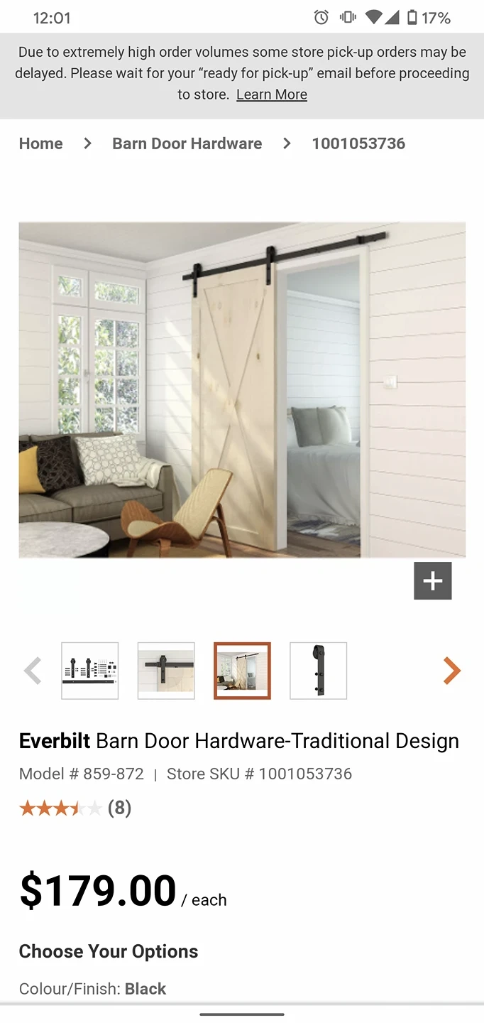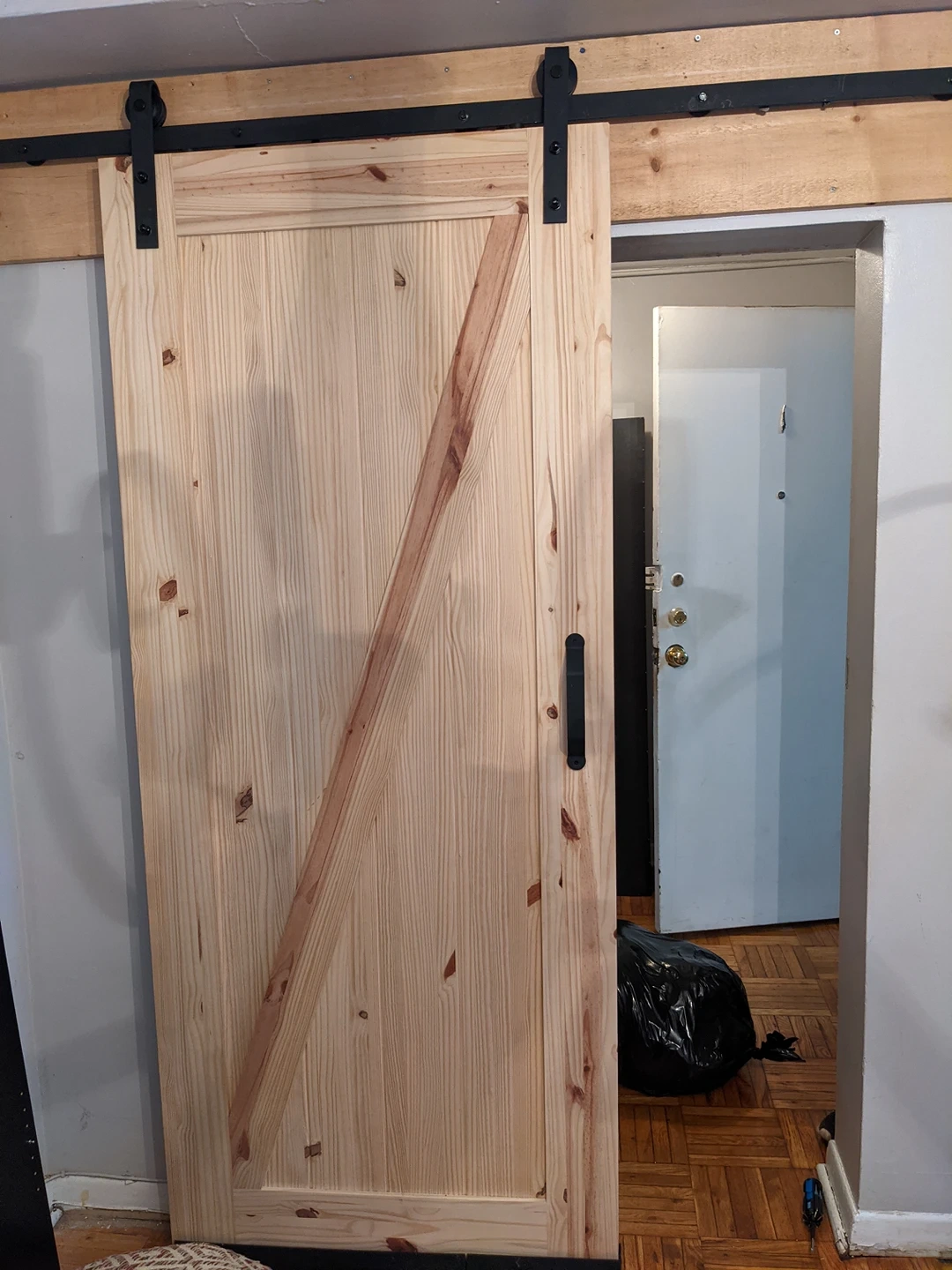 Barn door with hardware