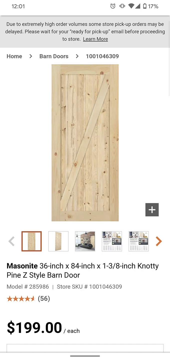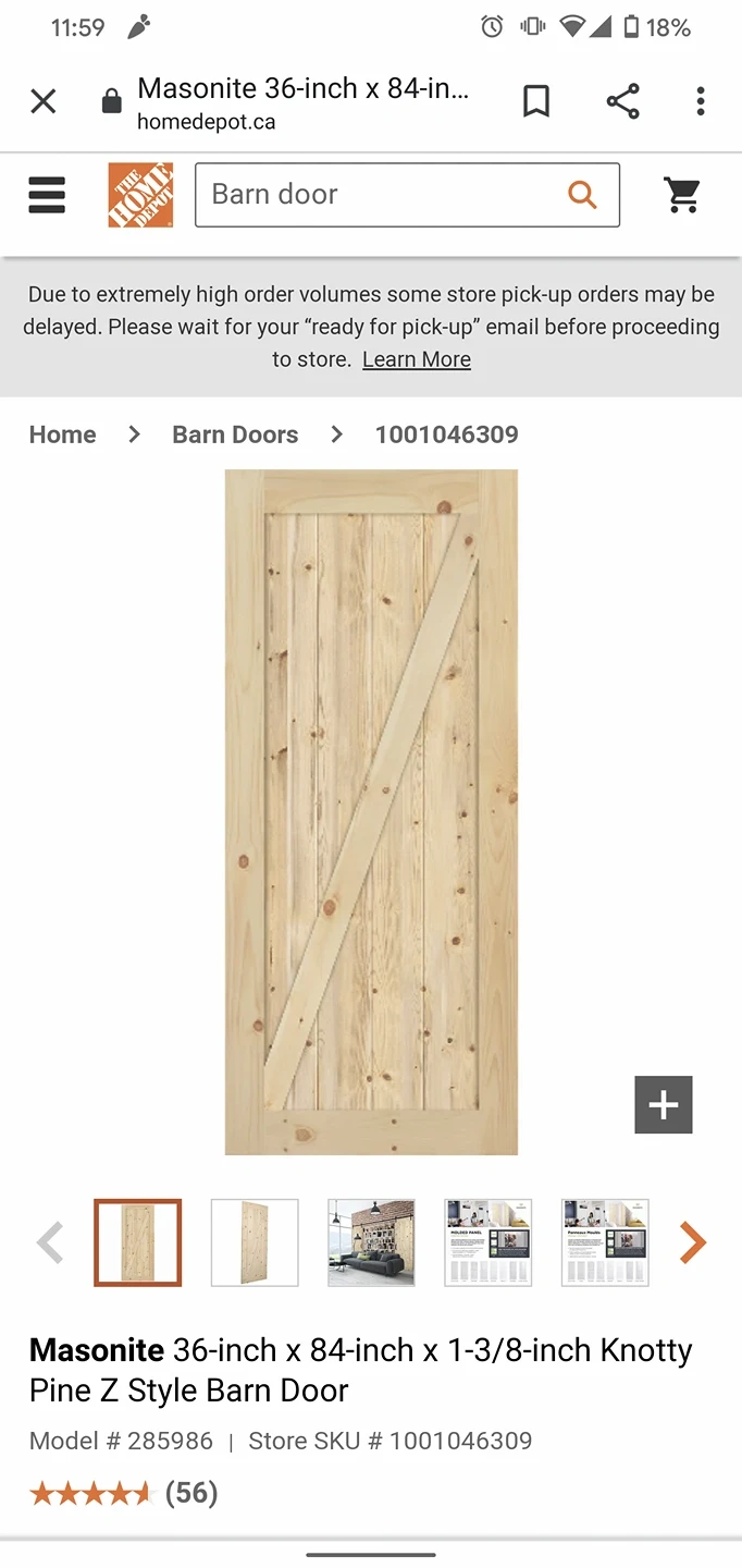 Pine barn door with hardware. 36x84 inches.
