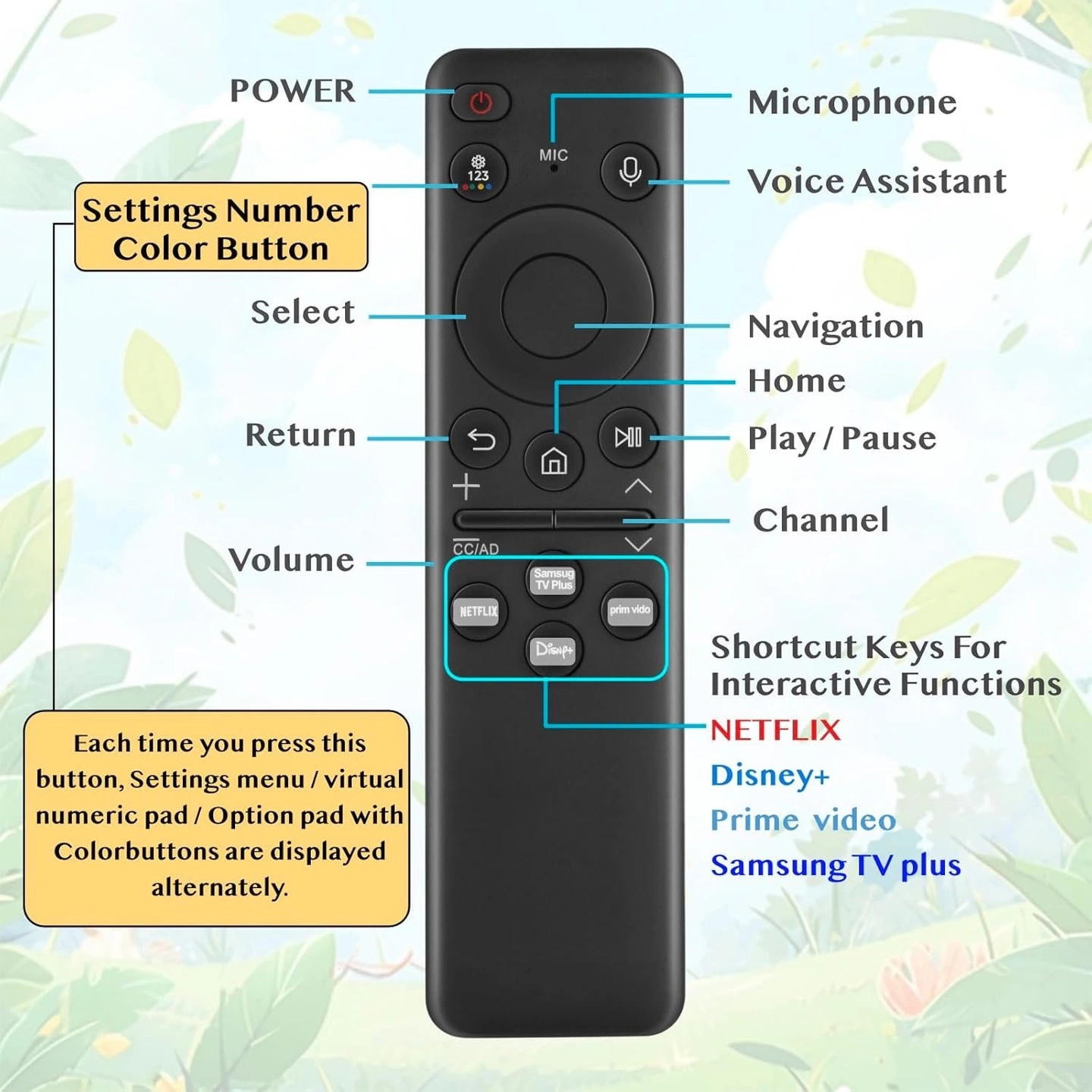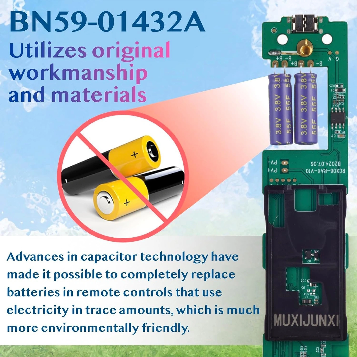 Solar Powered Replacement Remote for Samsung BN59-01432A Super Capacitor No Battery Needed Compatible with Smart TVs Streaming Shortcuts.