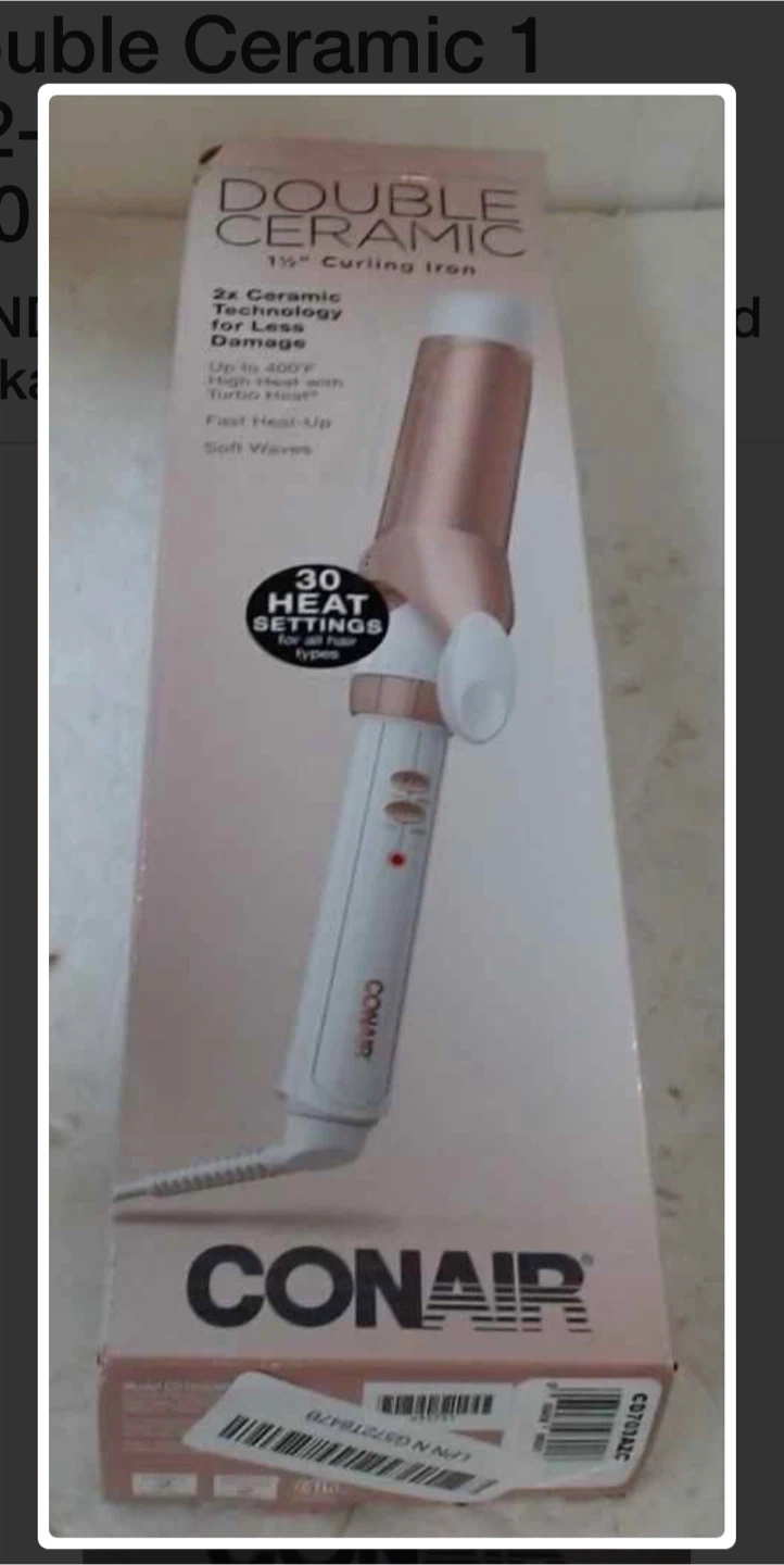Conair Double Ceramic curling iron, 1 1/4 inch size. It features 2X Ceramic Technology and up to 400F heat settings. Perfect for creating soft waves!