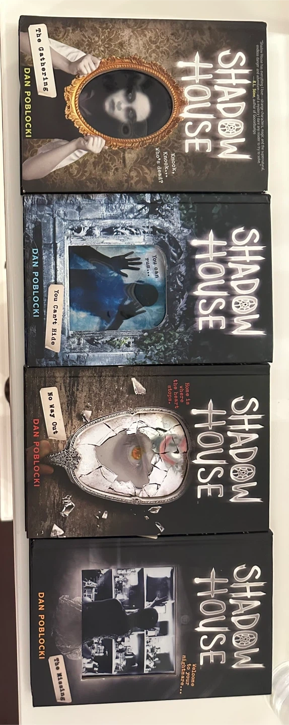 A set of four Shadow House books by Dan Poblocki. These are a spooky, supernatural mystery series. This collection includes "The Gathering," "You Can't Hide," "You May Regret This," and "The Missing."
