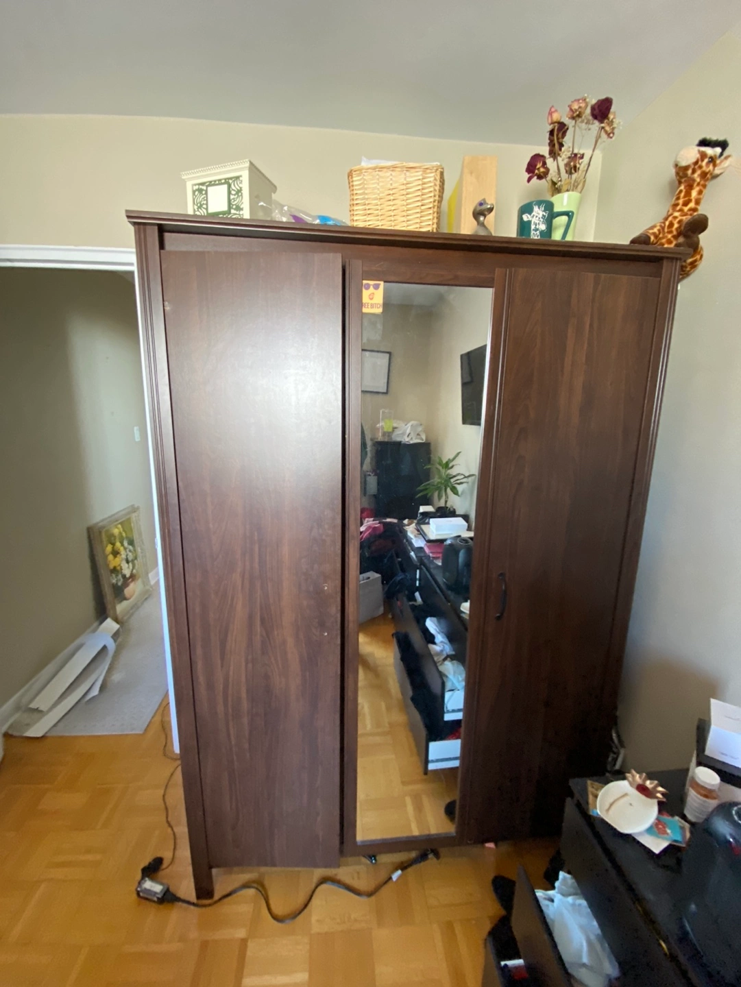 Middle door has a mirror