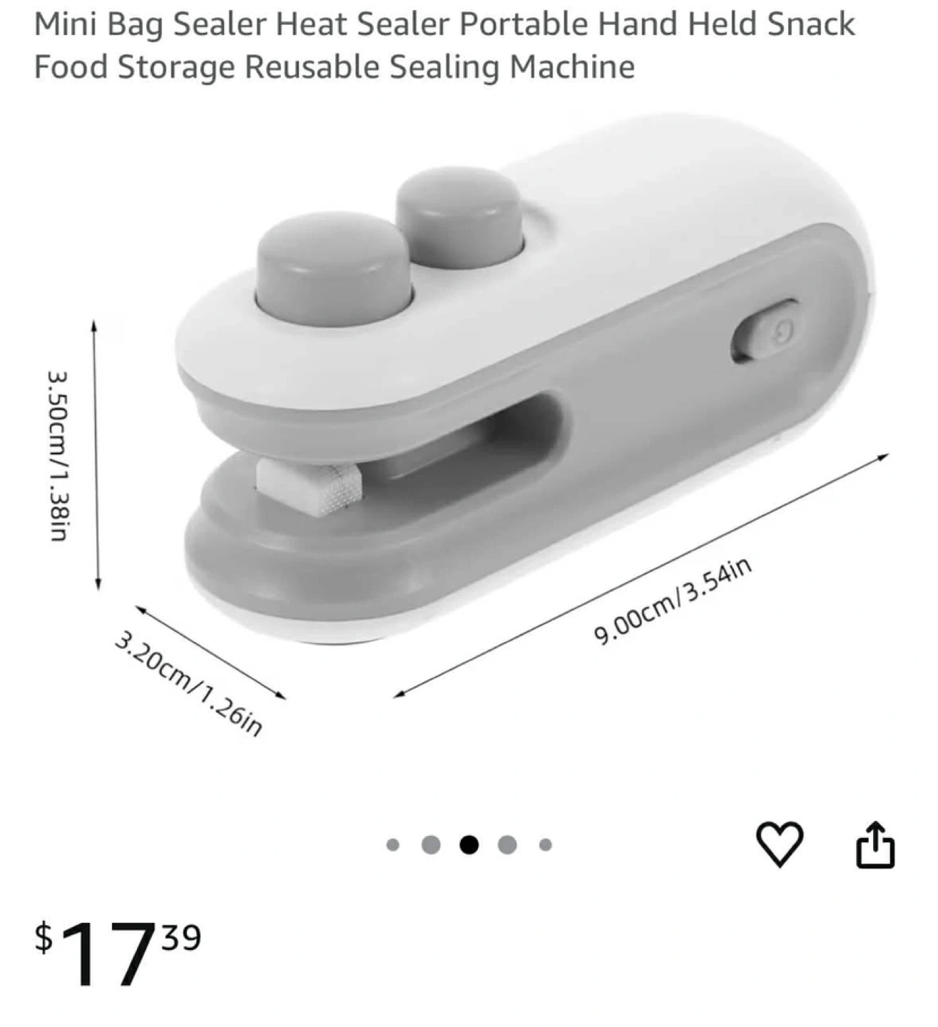 This portable bag sealer is a handy 2-in-1 tool for sealing and cutting food bags. It features a sharp knife cutter and a heated sewing function. The device measures approximately 9cm x 3.5cm x 4cm and charges via a Type-C port. Keep snacks fresh and organized!