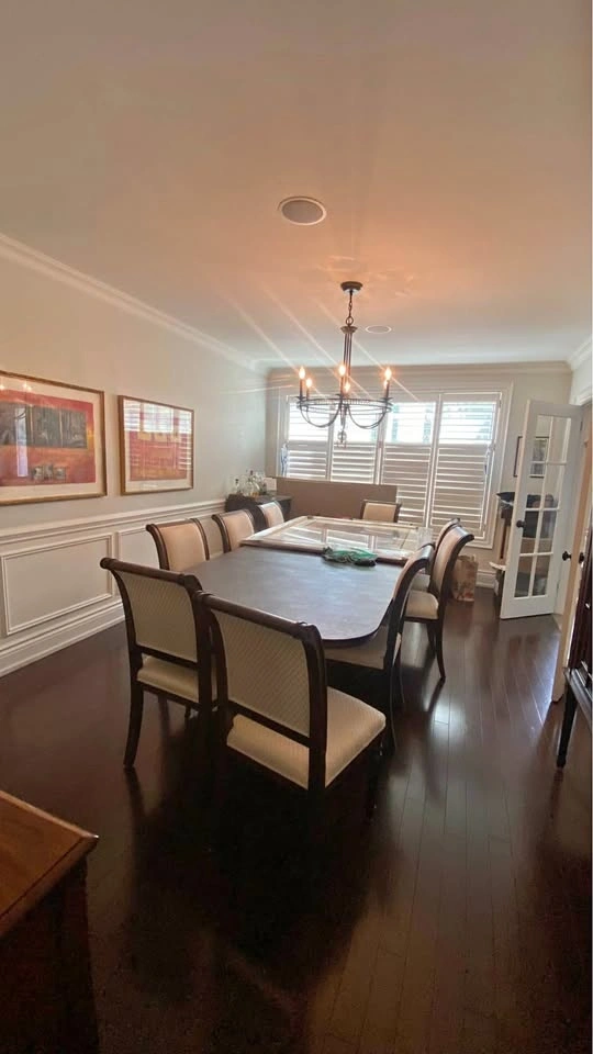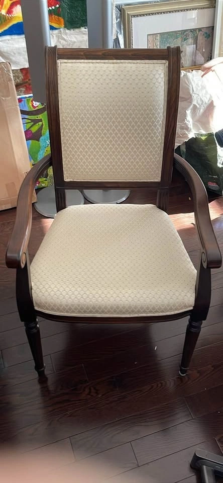 I also have 12 upholstered dining chairs - 2 captain chairs and 10 guest chairs - that will soon also for sale in a separate ad if you check my listings. They look great with the table.