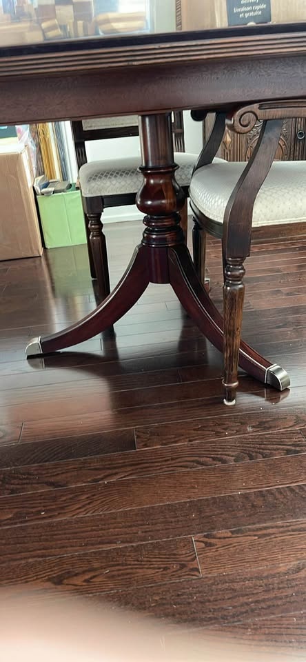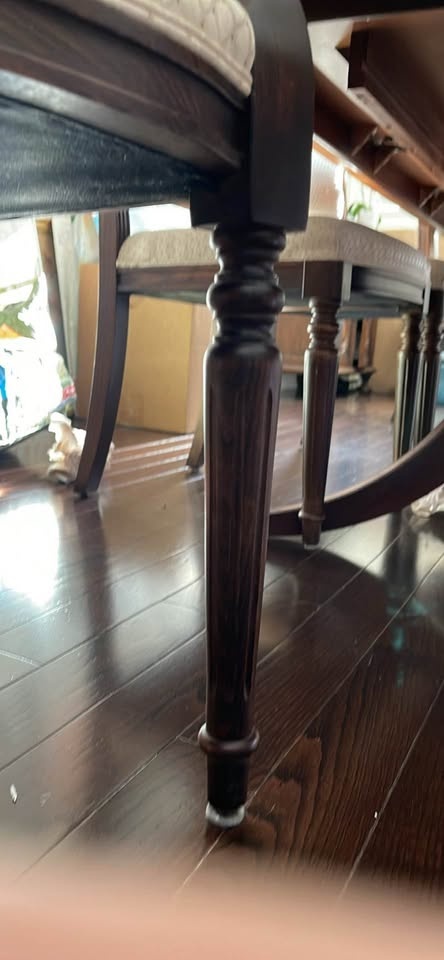 I also have 12 upholstered dining chairs - 2 captain chairs and 10 guest chairs - that will soon also for sale in a separate ad if you check my listings. They look great with the table.