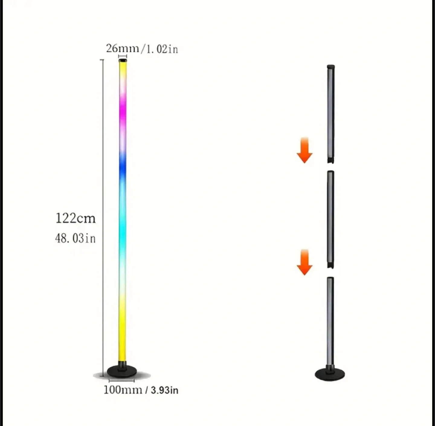 Add a modern touch to your space with this LED corner floor lamp! It's perfect for creating a cool ambience with its colour-changing capabilities. The remote control makes it super easy to use and adjust the lighting to suit any mood.