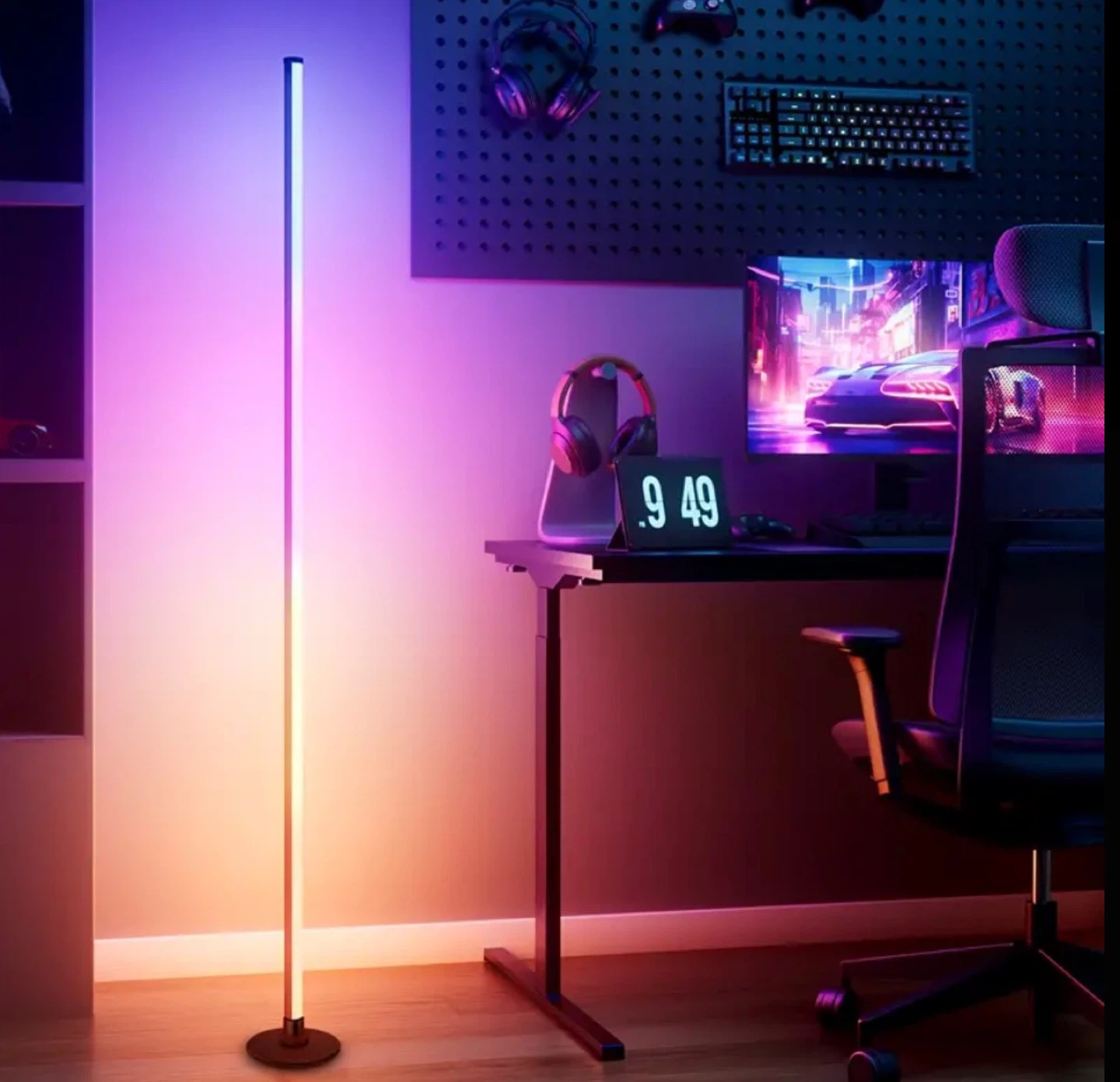 Add a modern touch to your space with this LED corner floor lamp! It's perfect for creating a cool ambience with its colour-changing capabilities. The remote control makes it super easy to use and adjust the lighting to suit any mood.