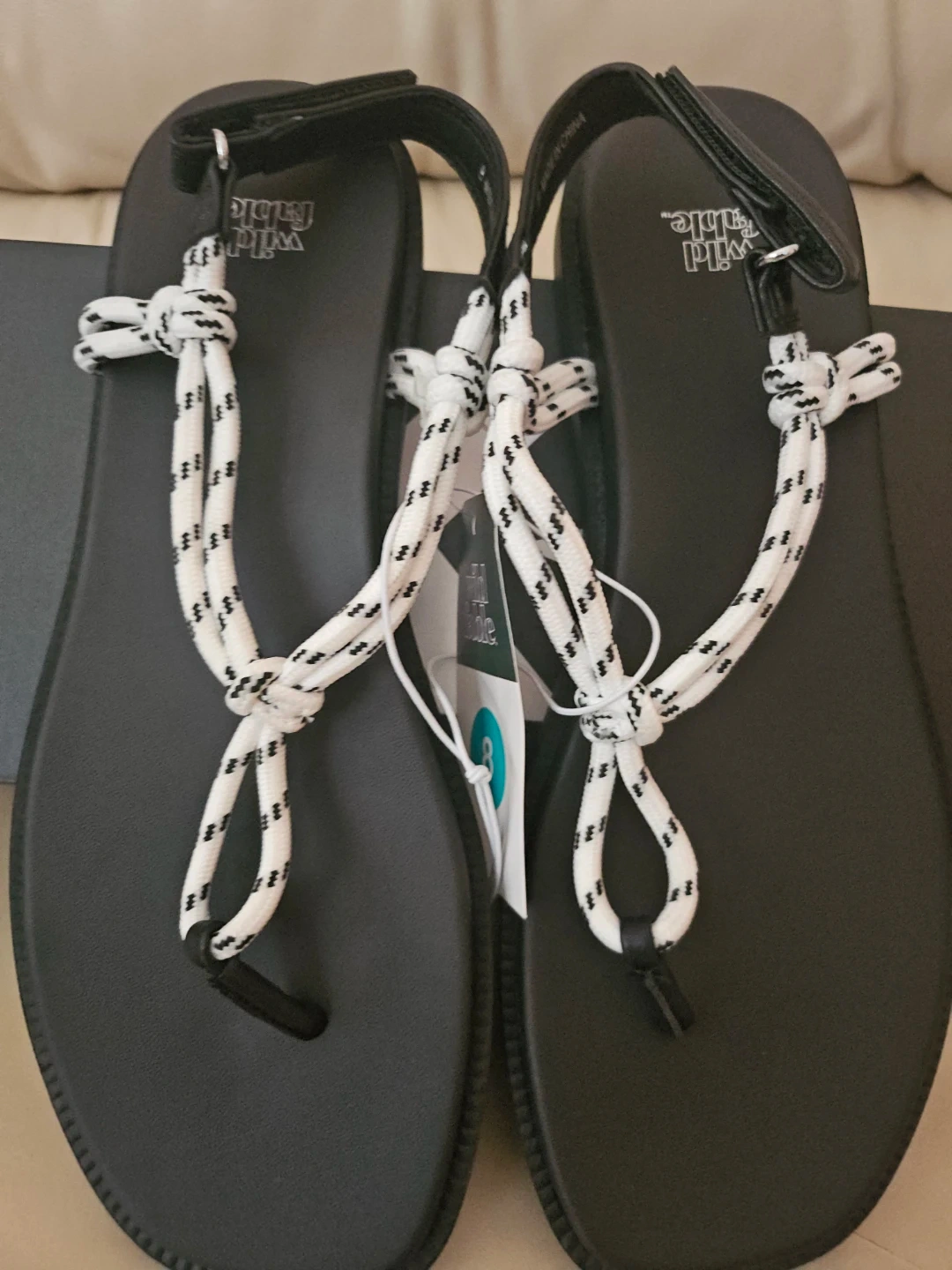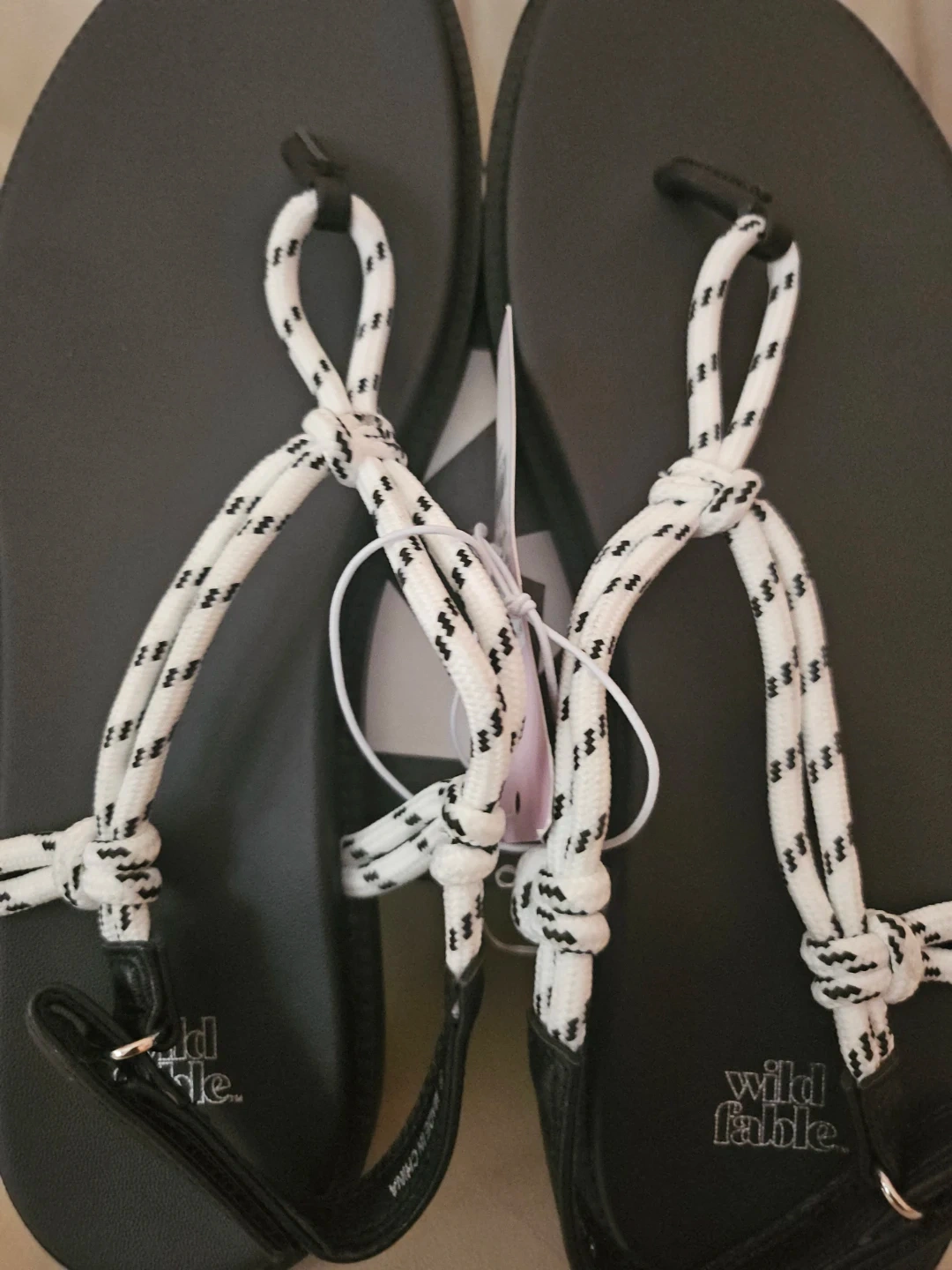 These Wild Fable black flip-flop sandals feature a stylish rope strap design. Size 8. Perfect for casual summer wear!