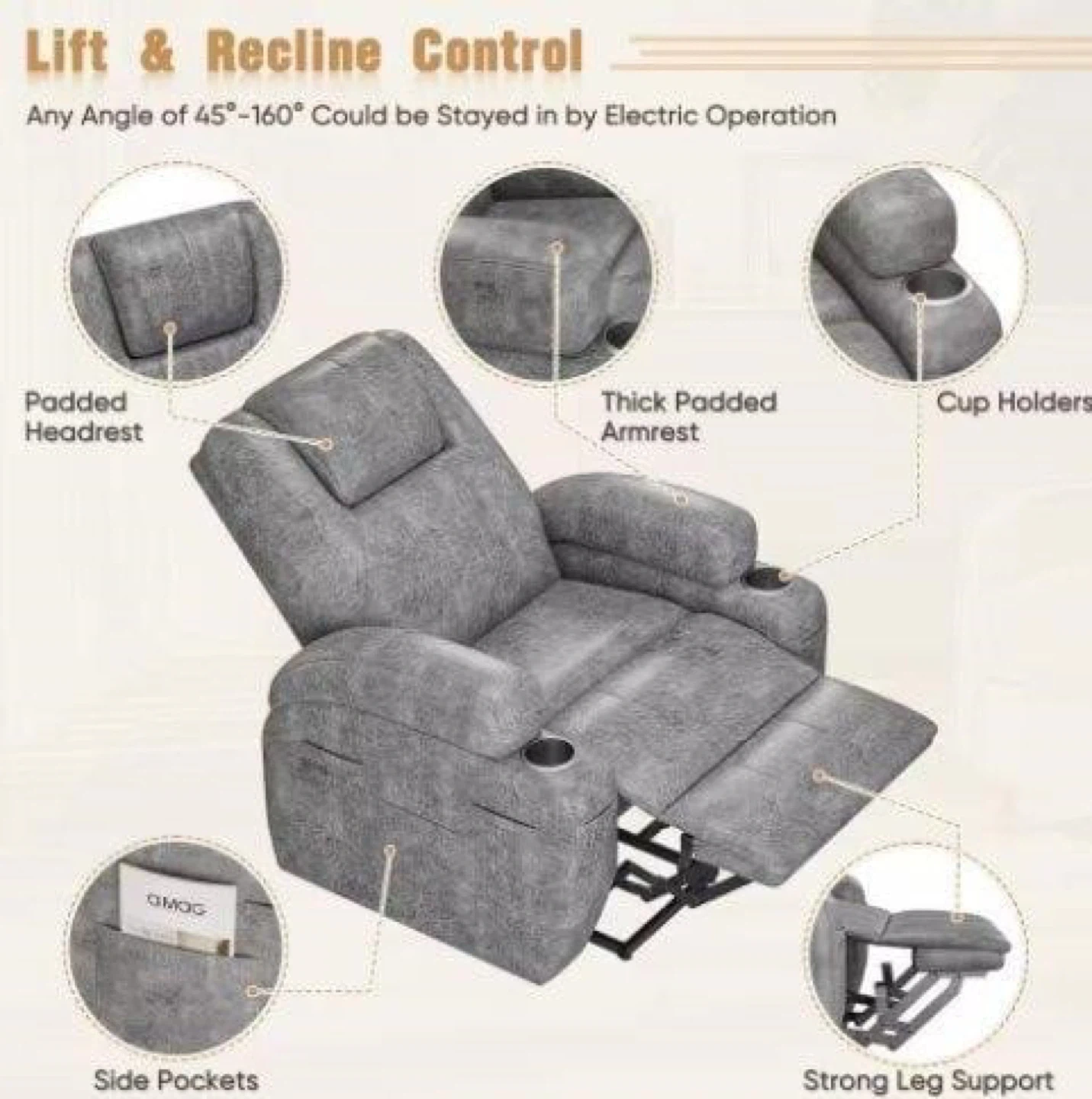 NEW IN BOX Grey RUM Lift Recliner Chair