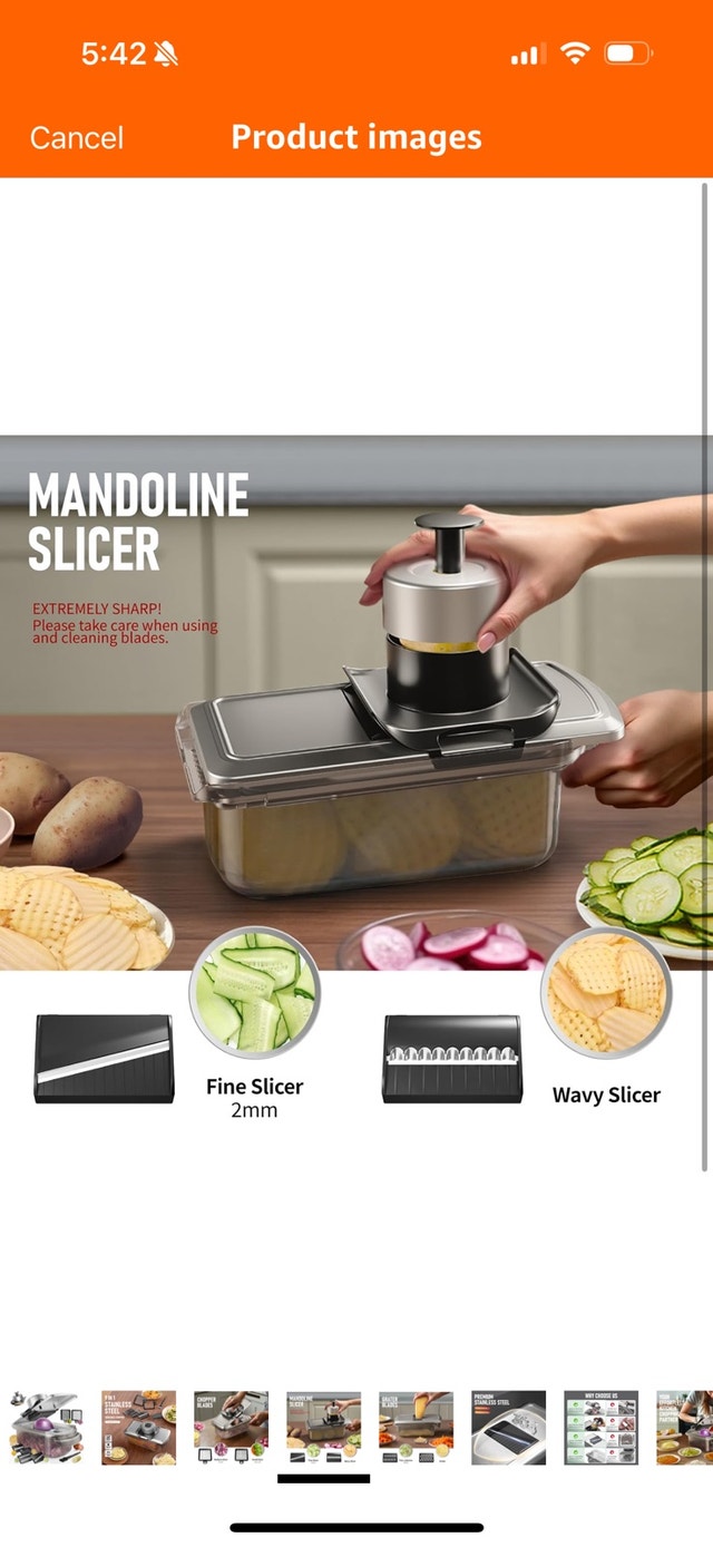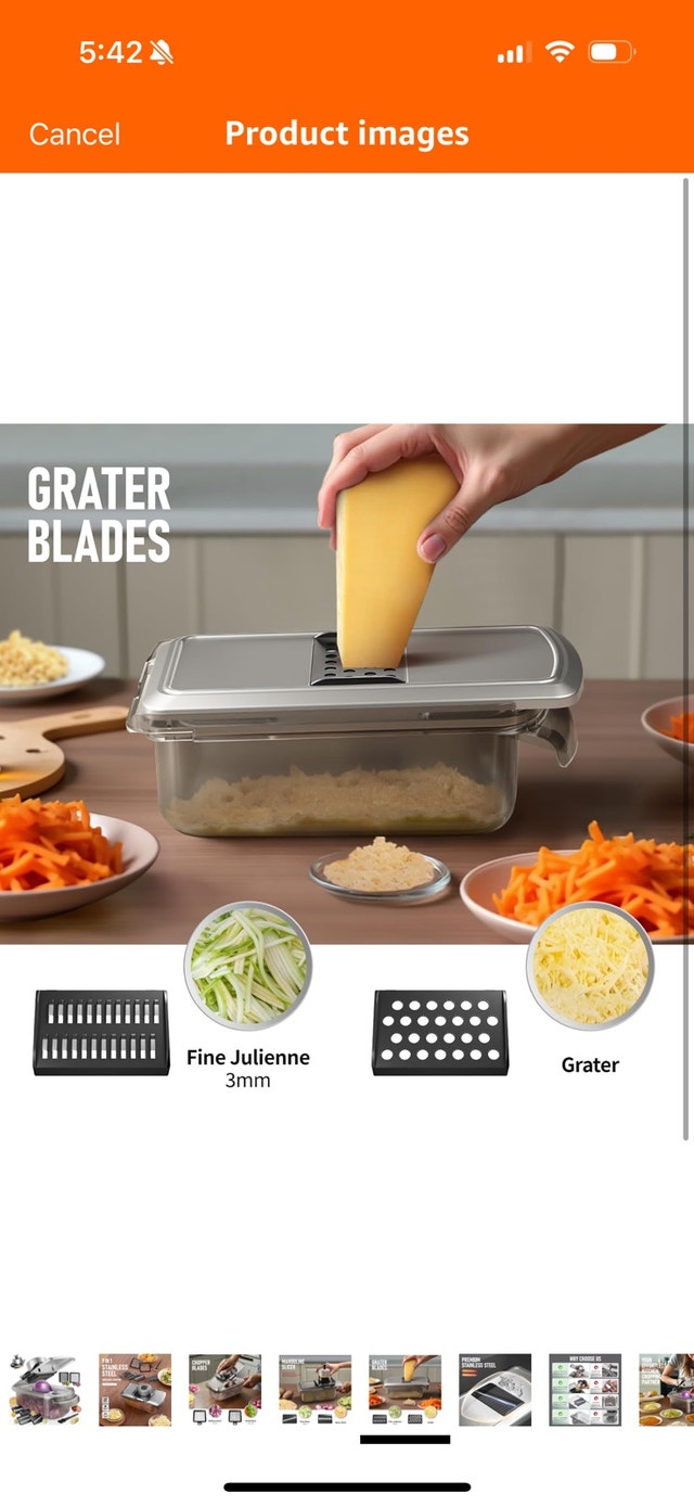 This is a 9-in-1 stainless steel vegetable chopper, designed to last! This item is used but in good condition. Includes multiple blades for dicing, slicing, grating, and more. It's BPA-free and made with premium quality 304 stainless steel. * 9-in-1 functionality * Stainless steel blades * BPA-free material * Includes multiple attachments