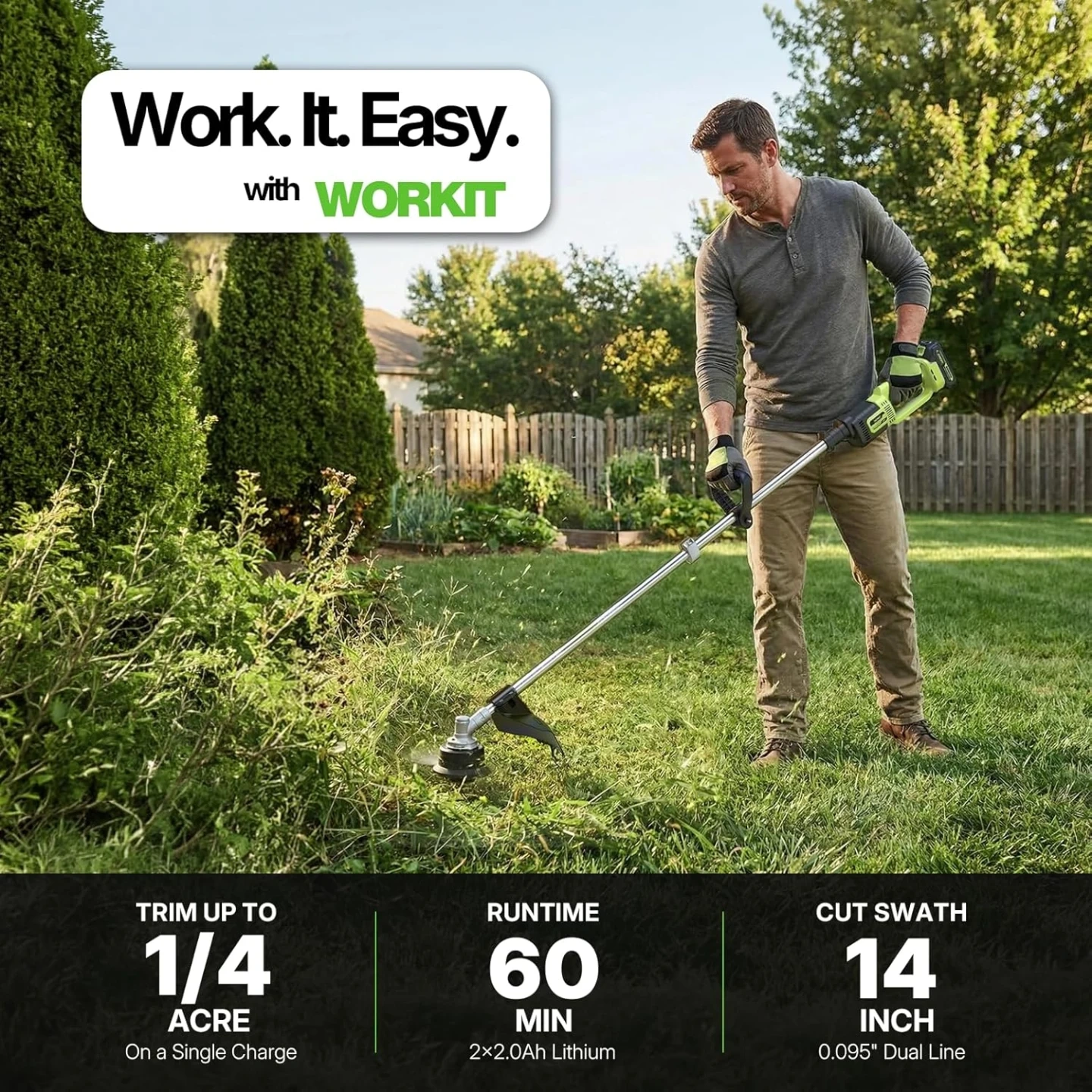 14" CUTTING SWATH – 16.7% wider than 12" grass trimmer. Fewer passes, faster results. Tackle fence lines and ditch banks in less time.Because your weekend shouldn't be spent wrestling with weeds.