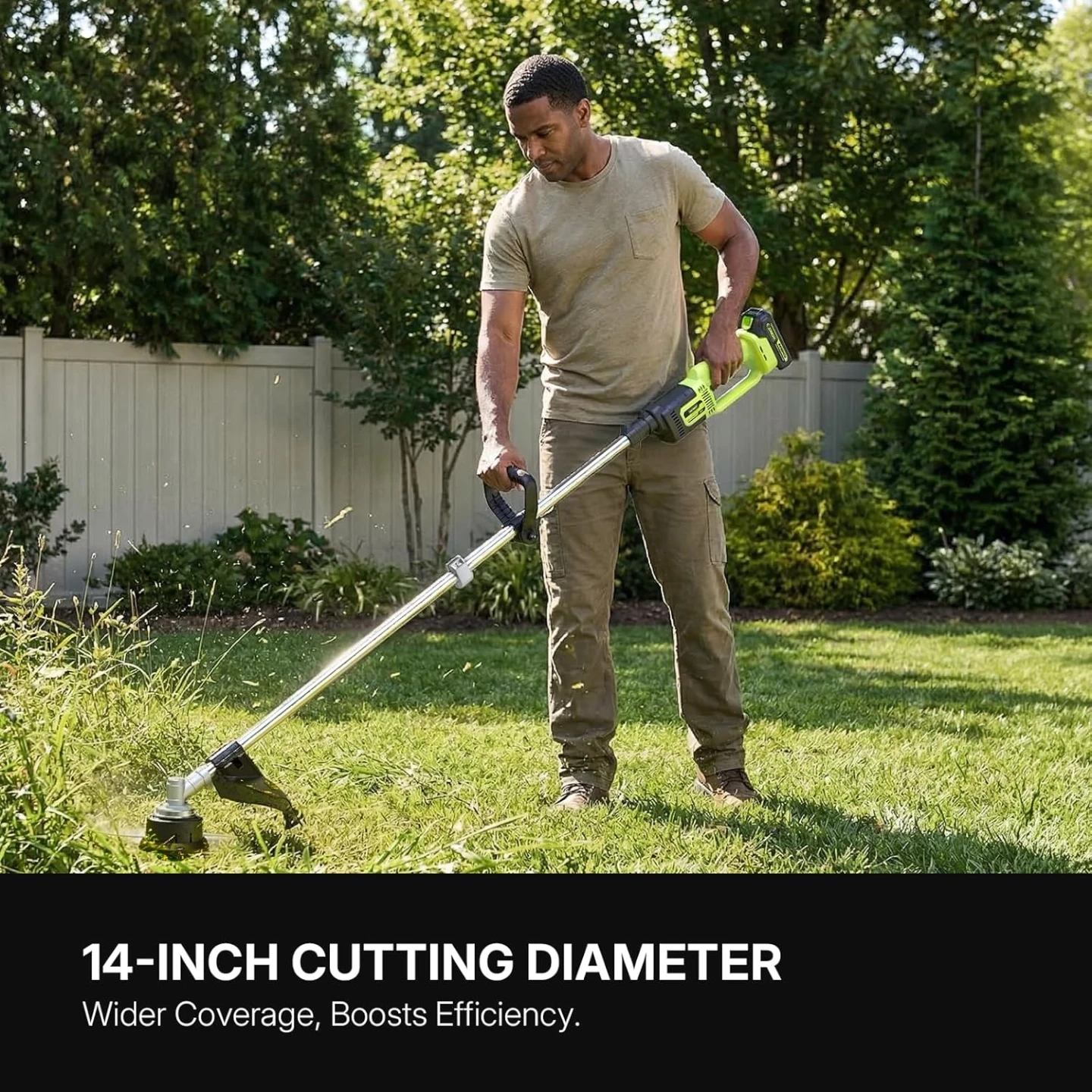 14" CUTTING SWATH – 16.7% wider than 12" grass trimmer. Fewer passes, faster results. Tackle fence lines and ditch banks in less time.Because your weekend shouldn't be spent wrestling with weeds.