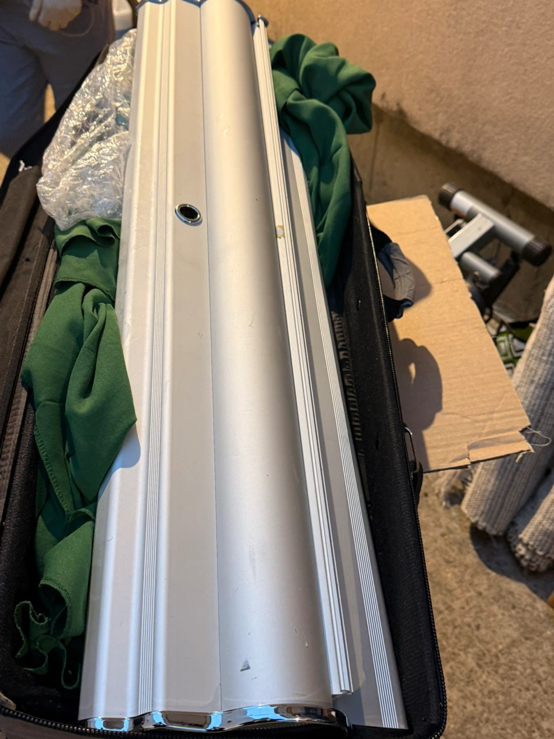 Selling a retractable banner stand that comes with its own carrying case. It's in good condition and ready for your next event or presentation. Easy to set up and take down!