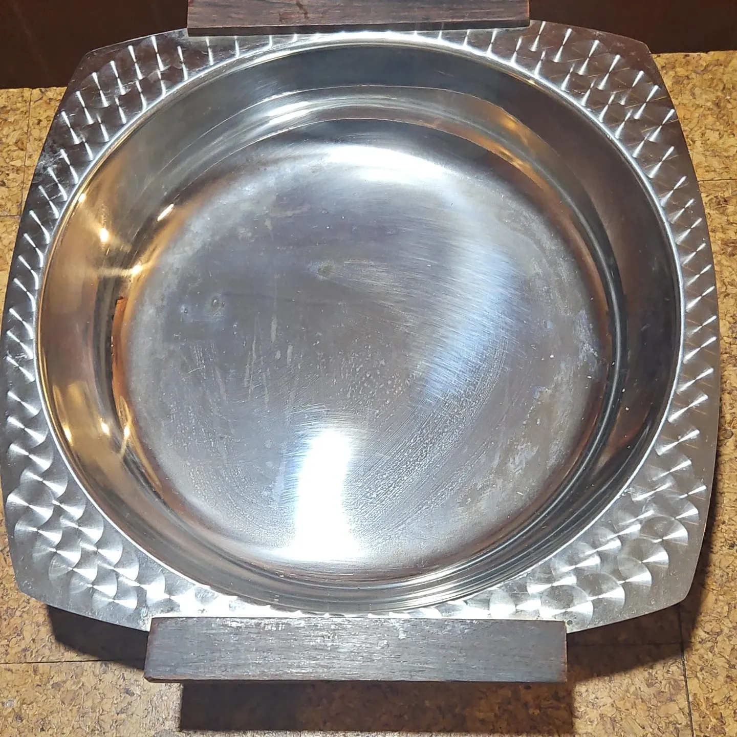 Set of 8 Stainless Steel Serving Dishes with Wood Accents