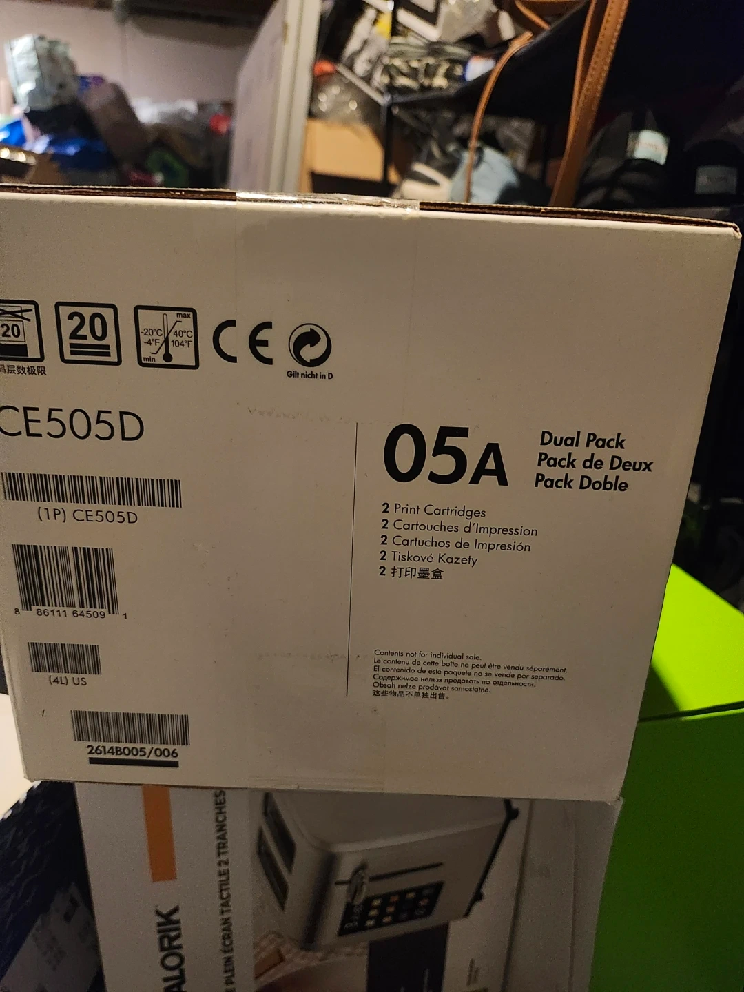 Buy & SellHP LaserJet 05A Toner Cartridge Dual PackHP LaserJet 05A Toner Cartridge Dual Pack$45HP LaserJet 05A dual pack toner cartridges. Includes two black print cartridges. Suitable for various LaserJet printers.BrandHPWHERE TO MEETMalvern mallView MapSELLERverifiedJayMalvern731 review1 chats·0 favorites·8 viewsSEND CHAT TO SELLERHi Jay! I’m interested in your listing.Hi Jay! I’m interested in your listing.Get the Karrot app to chatSign In to chat