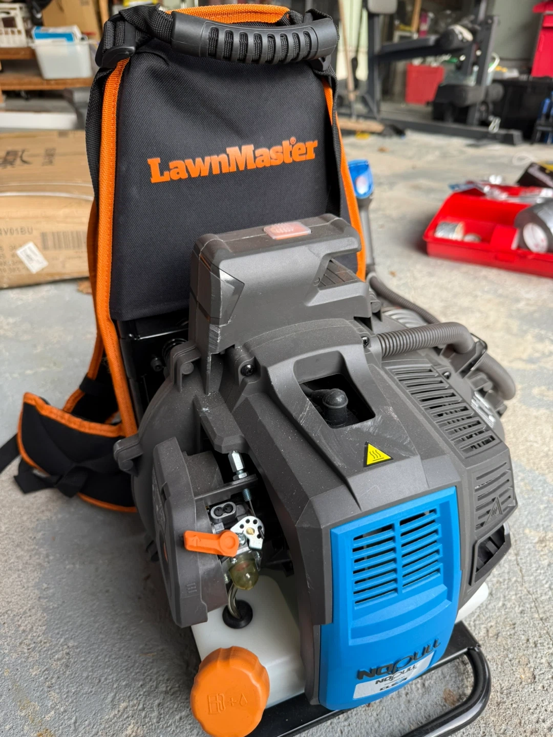 Looking to clear some leaves? This LawnMaster NoPull 31cc 2-Cycle blower is ready to go! It comes with a handy backpack for easy carrying. Check out the photos for details on operation and starting instructions