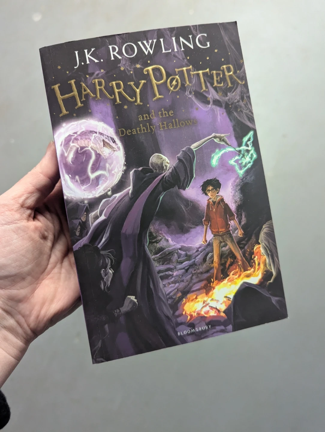 This is the book "Harry Potter and the Deathly Hallows" by J.K. Rowling. It's the final instalment in the Harry Potter series. Brand new, received two as a gift.