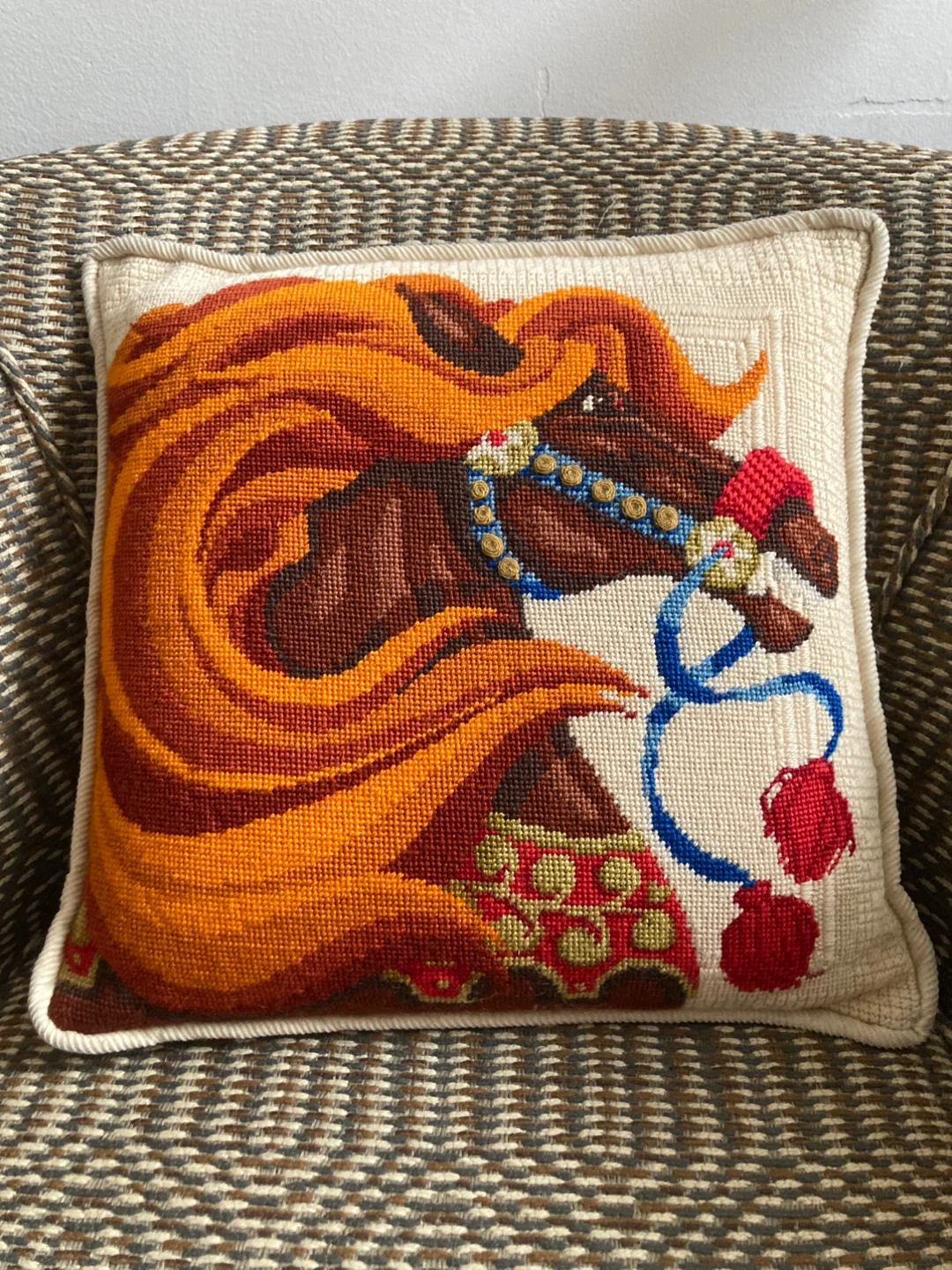 Horse Needlepoint Throw Pillow
