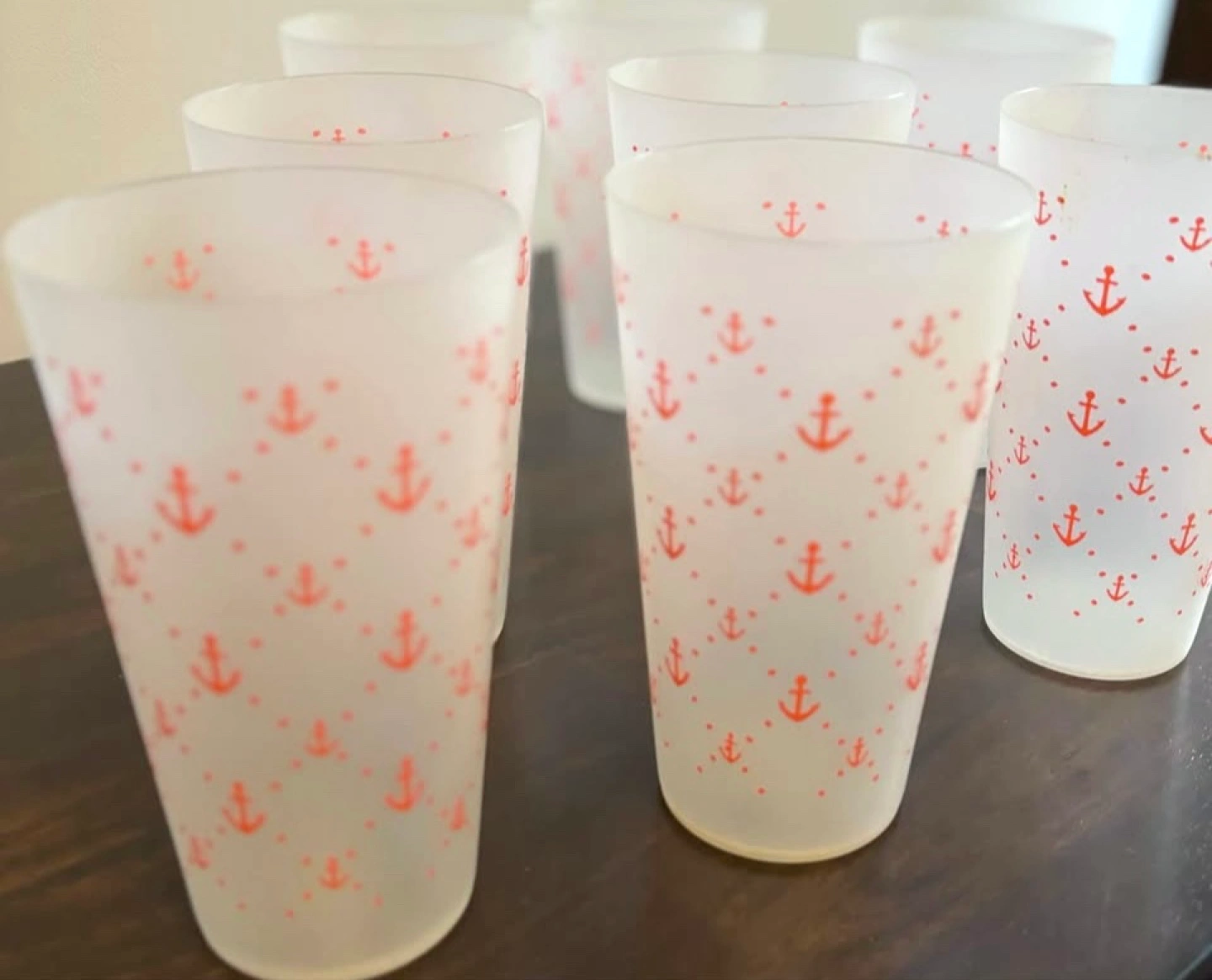 Tall Tumblers with Coral Nautical/Anchors Detail, Like New
