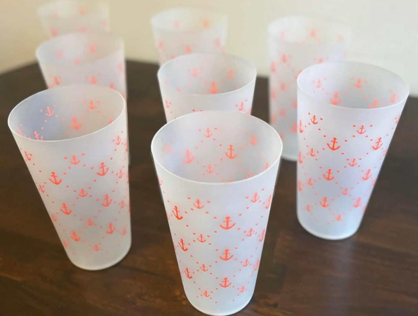 Tall Tumblers with Coral Nautical/Anchors Detail - (frosted plastic)