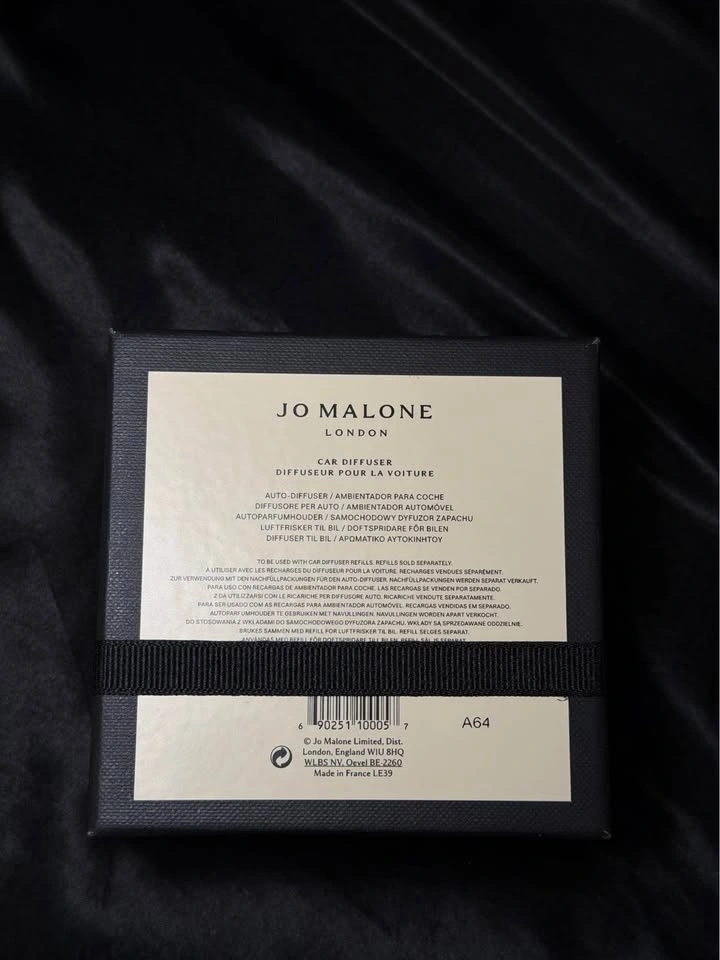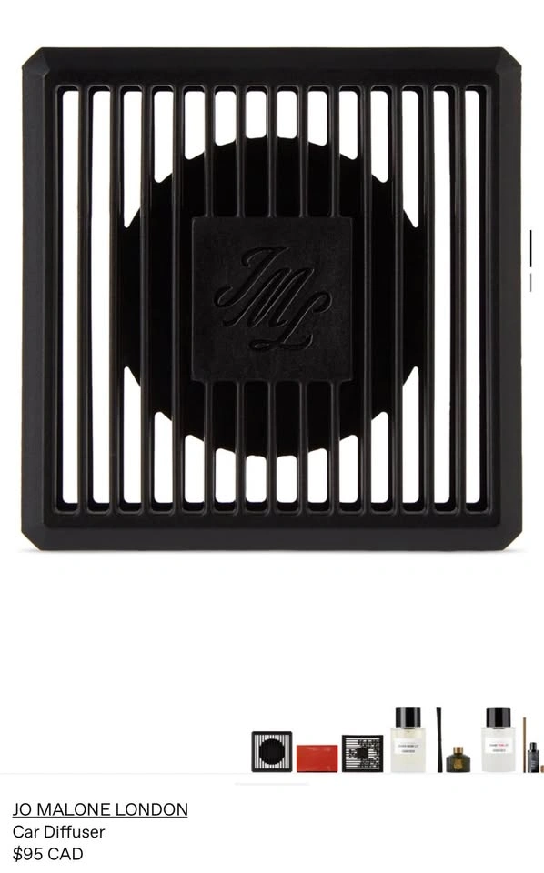 Brand new in box, authentic Jo Malone car diffuser. Diffuser only – no refill included. Retail price: $95 CAD + tax. Minimal, luxury accessory designed to keep your car smelling clean and elevated.