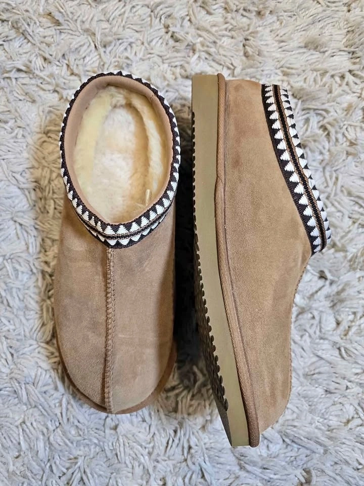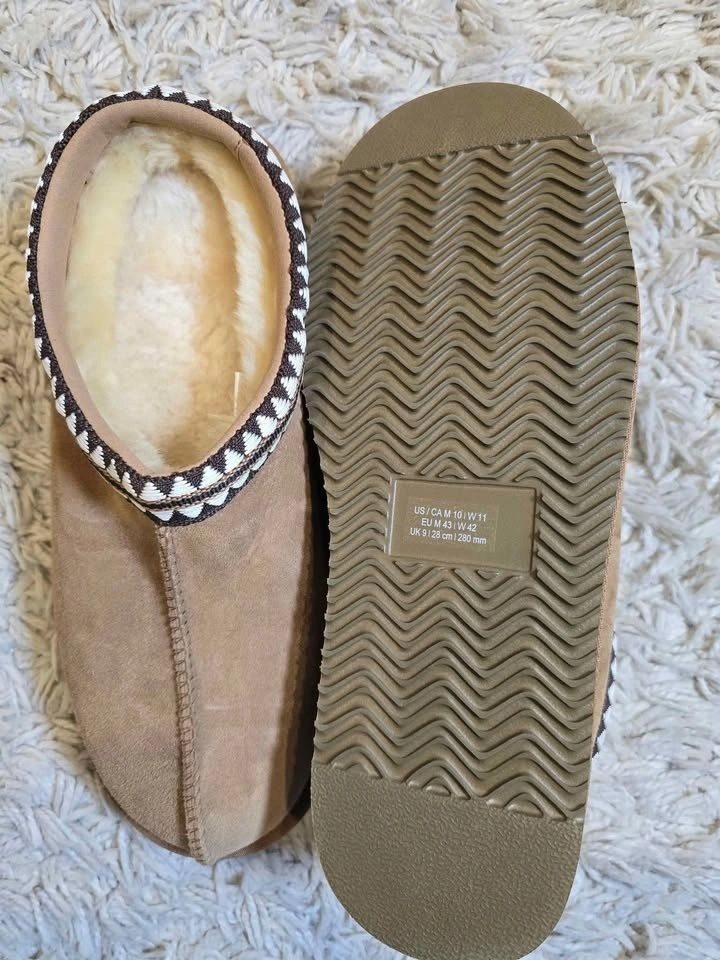 Soft, warm, and very comfortable indoor slippers in excellent condition. Hard rubber sole underneath makes it safe for quick steps outside too (mailbox, balcony, quick run to the car).