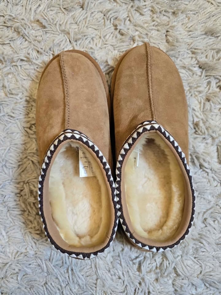 Soft, warm, and very comfortable indoor slippers in excellent condition. Hard rubber sole underneath makes it safe for quick steps outside too (mailbox, balcony, quick run to the car).