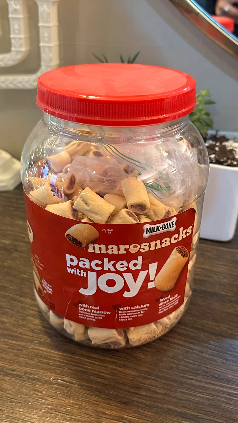 Giving away a mostly full jar of Milk-Bone MaroSnacks, packed with joy for your furry friend! These treats are made with real bone marrow and calcium, helping to maintain strong teeth and bones for a happy smile and healthy life