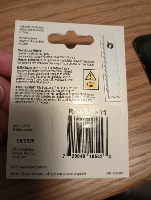 156V PetSafe dog collar batteries - 3 batteries. New in package. Expire in 2029. See pictures for details. Pick up near Banwell and the Expressway.